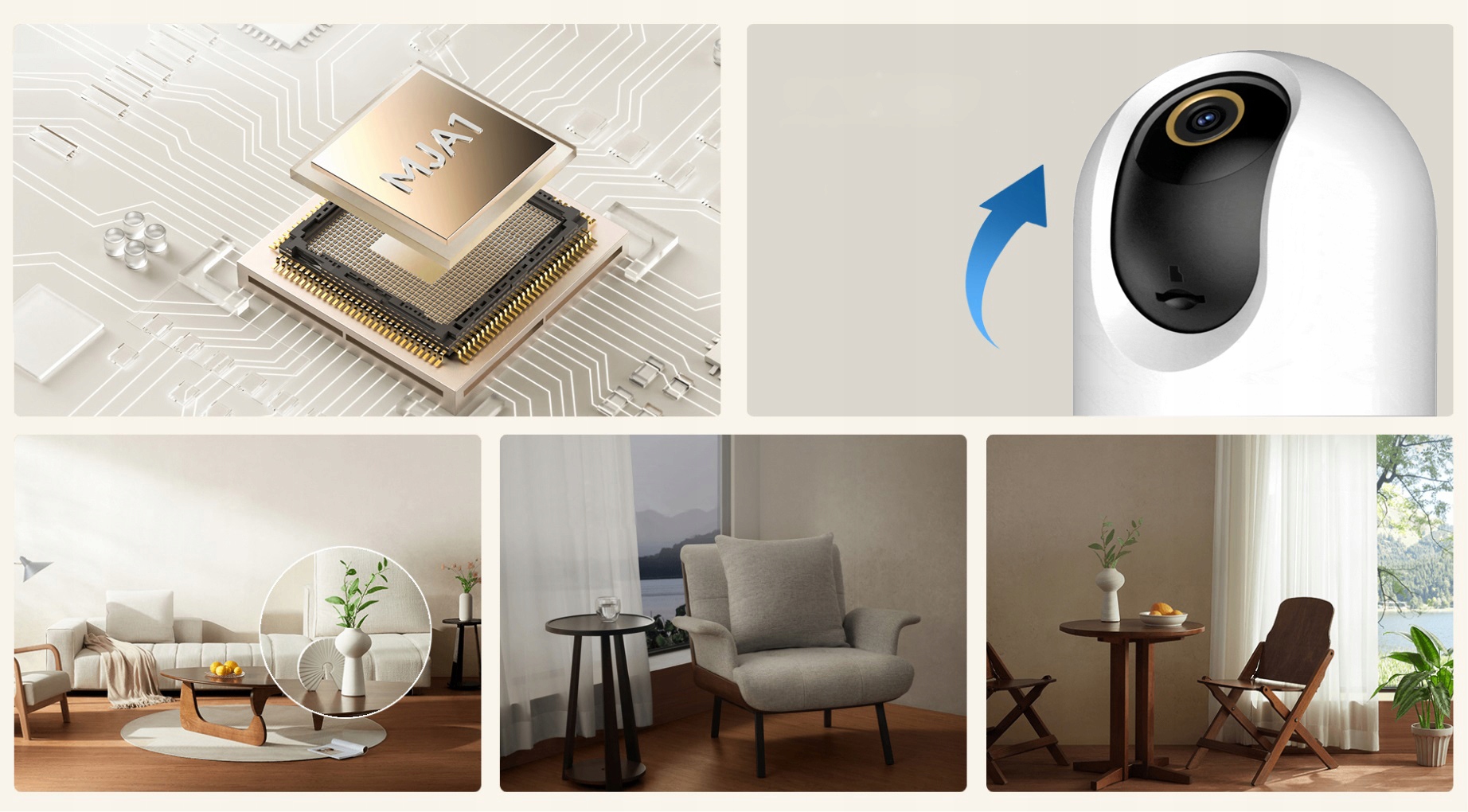 Зум з подвійним двигуном з поворотним нахилом дозволяє гнучко обертати об’єктив угору, вниз, ліворуч і праворуч на 360° по горизонталі та на 114° по вертикалі . Він забезпечує широкий горизонт, не залишаючи сліпих зон у вашому домі.