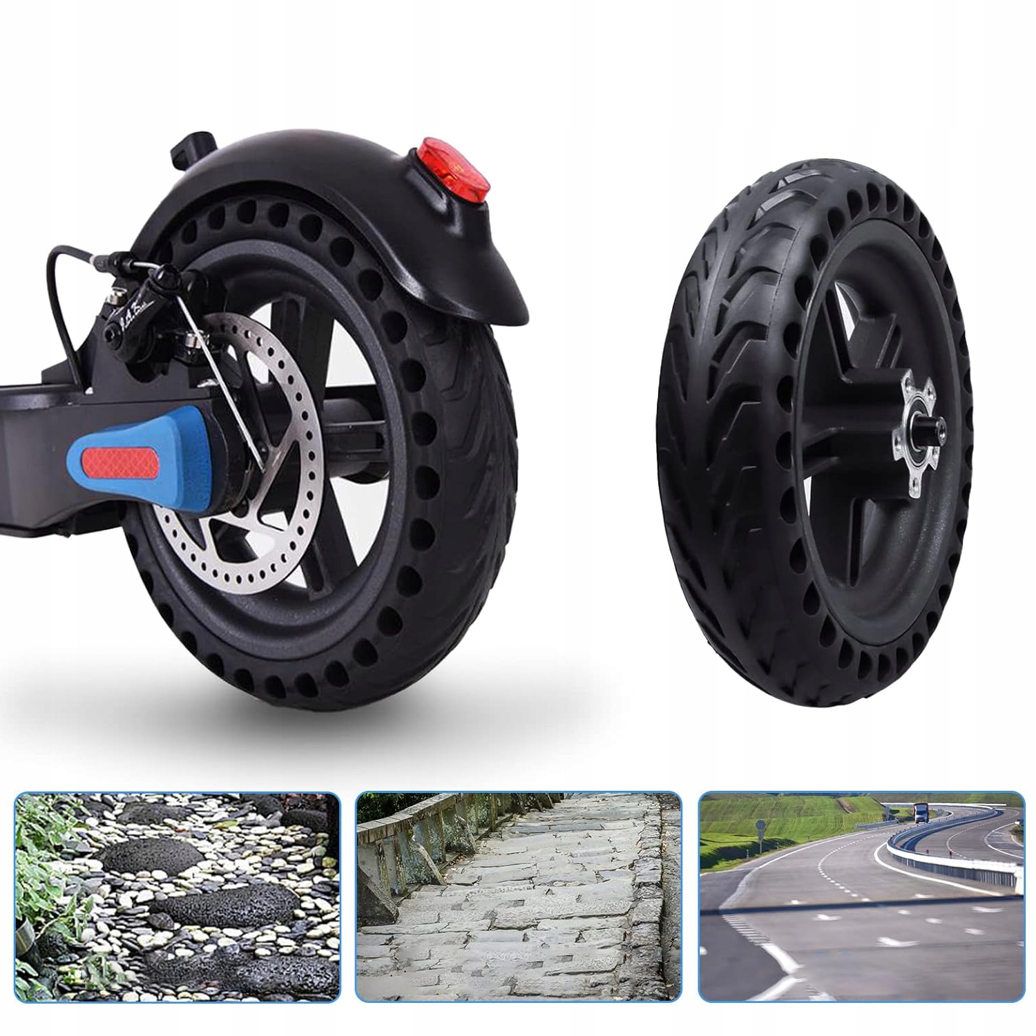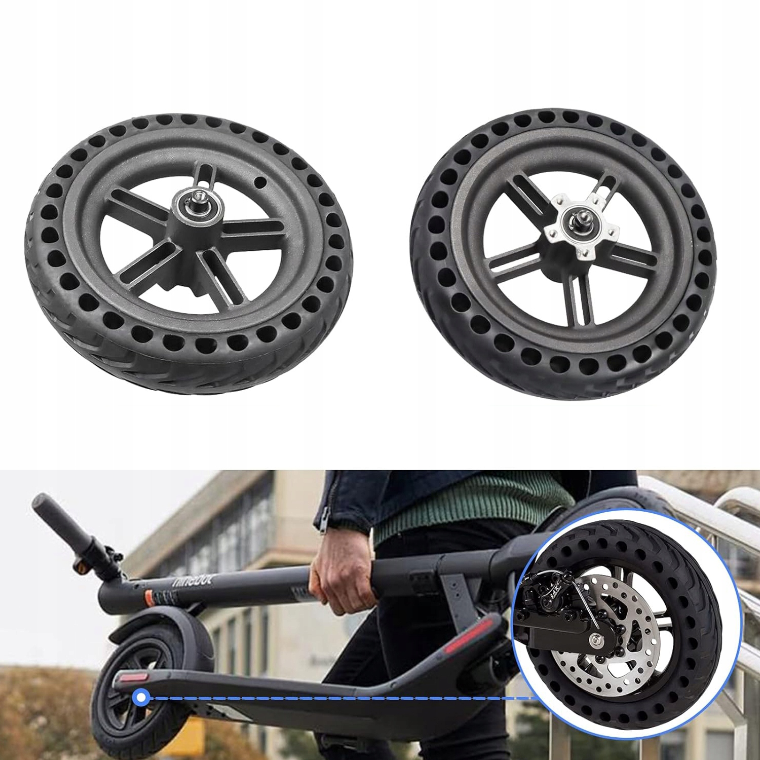 🛴Непневматичні шини. Ця гумова шина не потребує повітря, проколів або камери, тож вам не потрібно хвилюватися про те, що вона спуститься.