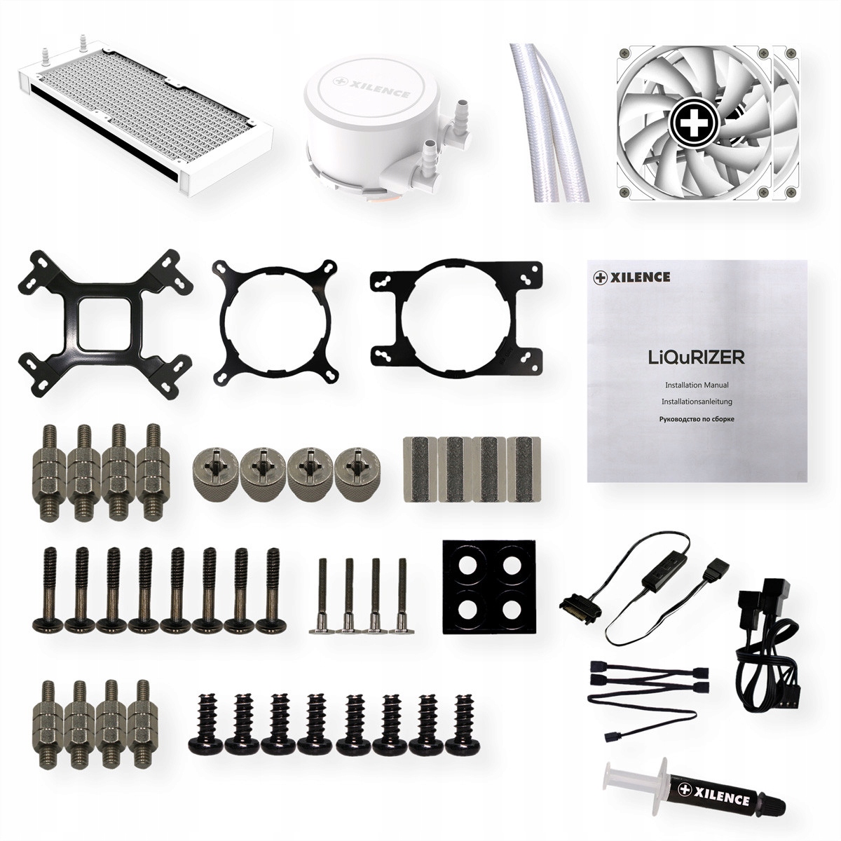 Завдяки великим мідним теплорозсіювачам на підсвіченій головці насоса та потужним радіаторам у поєднанні з вентиляторами ШІМ із накопичувачем рідини гарантується тиха й ефективна робота.