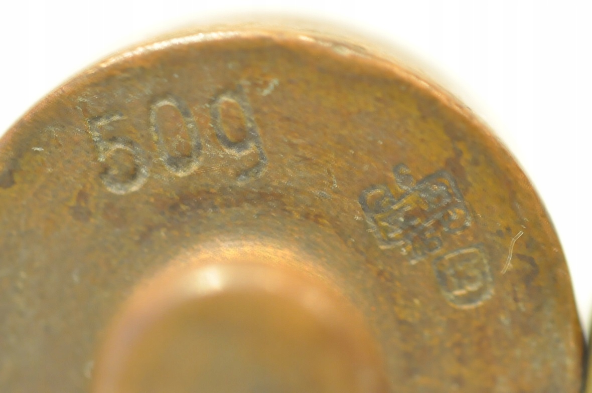 На нижній частині гир, крім гирі 100 г, немає розбірливих знаків легалізації.