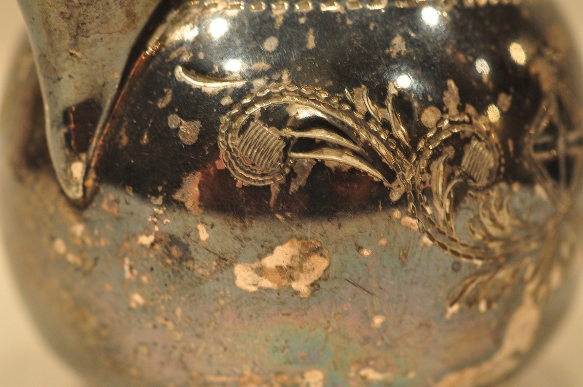 Срібло молока покрито старою темною патиною.