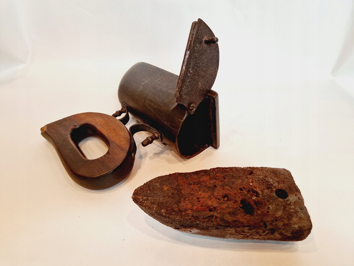 XIX-XXw / 3,31 kg - ZABYTKOWE STALOWE ŻELAZKO NA DUSZĘ (kpl z duszą) /7191