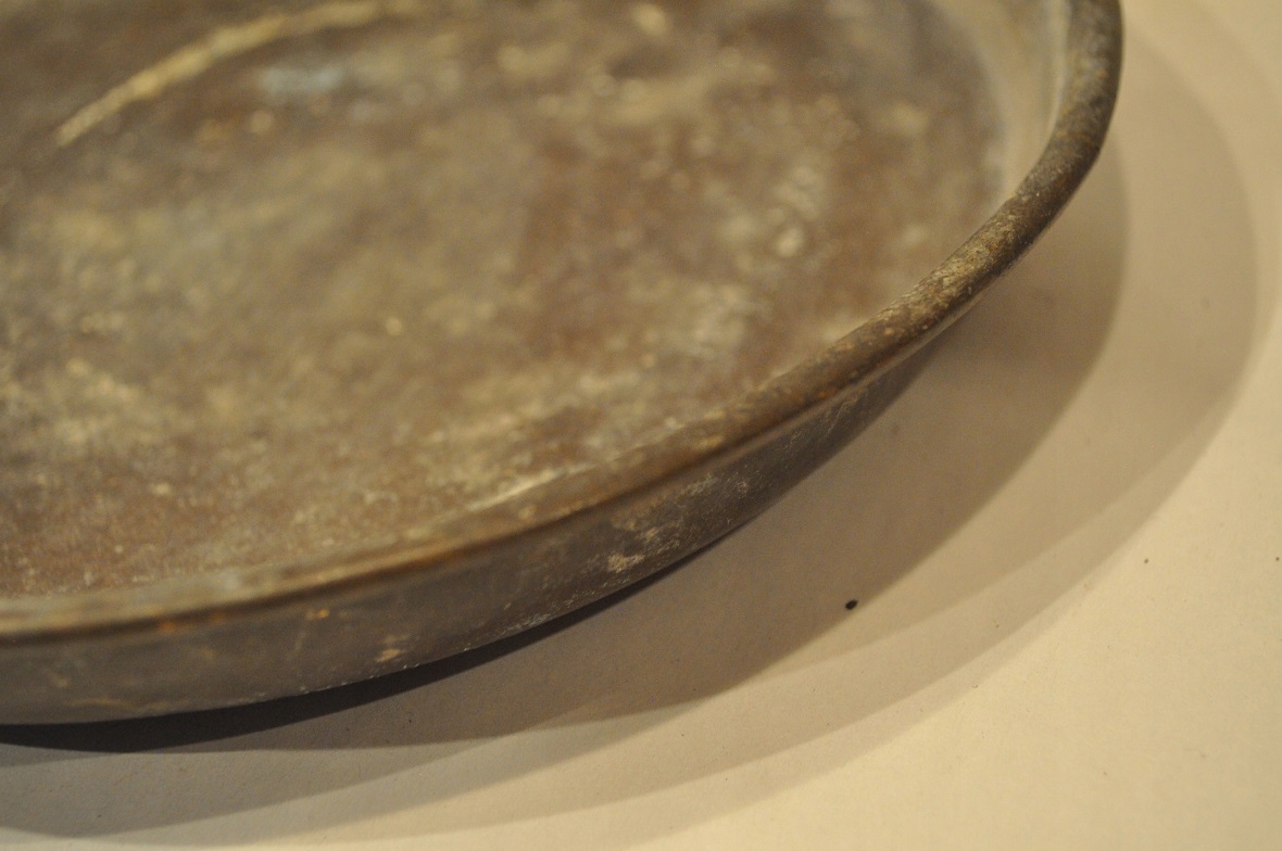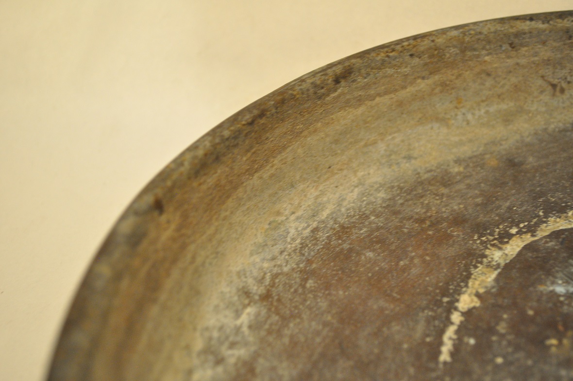 Сковорода покрита оригінальною, старовинною, темною патиною з червоним нальотом.