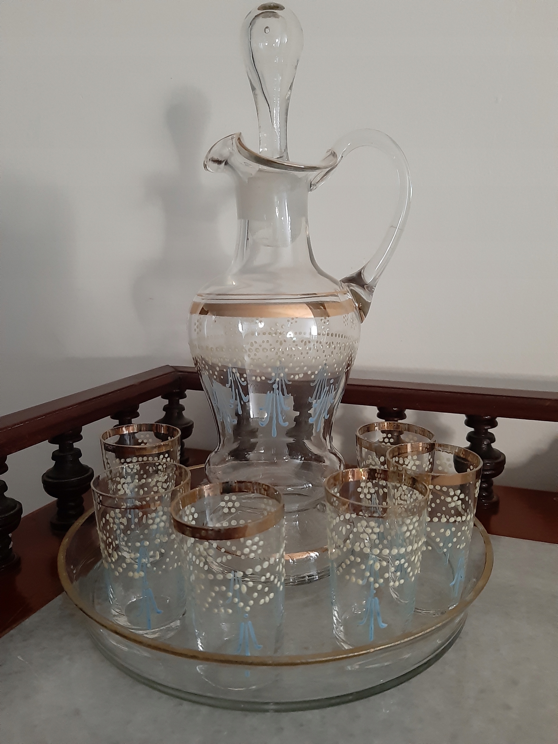 ЧУДОВИЙ СТАН - НІ ПОШКОДЖЕННЯ АБО ПОШКОДЖЕННЯ, ЛИШЕ ПОЗОЛОЧЕНЕ ПОКРИВАННЯ НА 2 СТАКАНАХ, В ІНШОМУ ЧАСТИНІ ВСІ ЧАСТИНИ НАБОРУ В ІДЕАЛЬНОМУ СТАНІ.