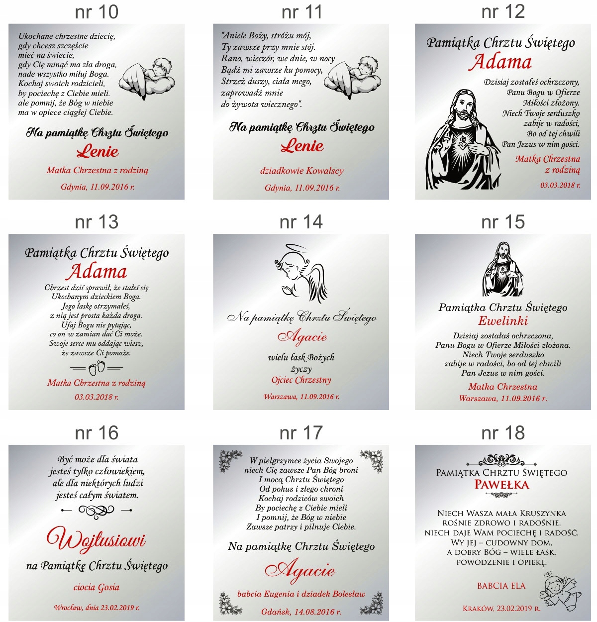 ЗРАЗКИ ТАЛІШОК ДЛЯ ХРЕЩЕННЯ (ДАНІ, ЯКІ НЕОБХІДНО НАДАВАТИ ПРИ ЗАМОВЛЕННІ РАЗОМ ІЗ ВИБРАНИМ ШАБЛОНОМ ТАЛІШОК, ПОМІЧЕНО ЧЕРВОНИМ)