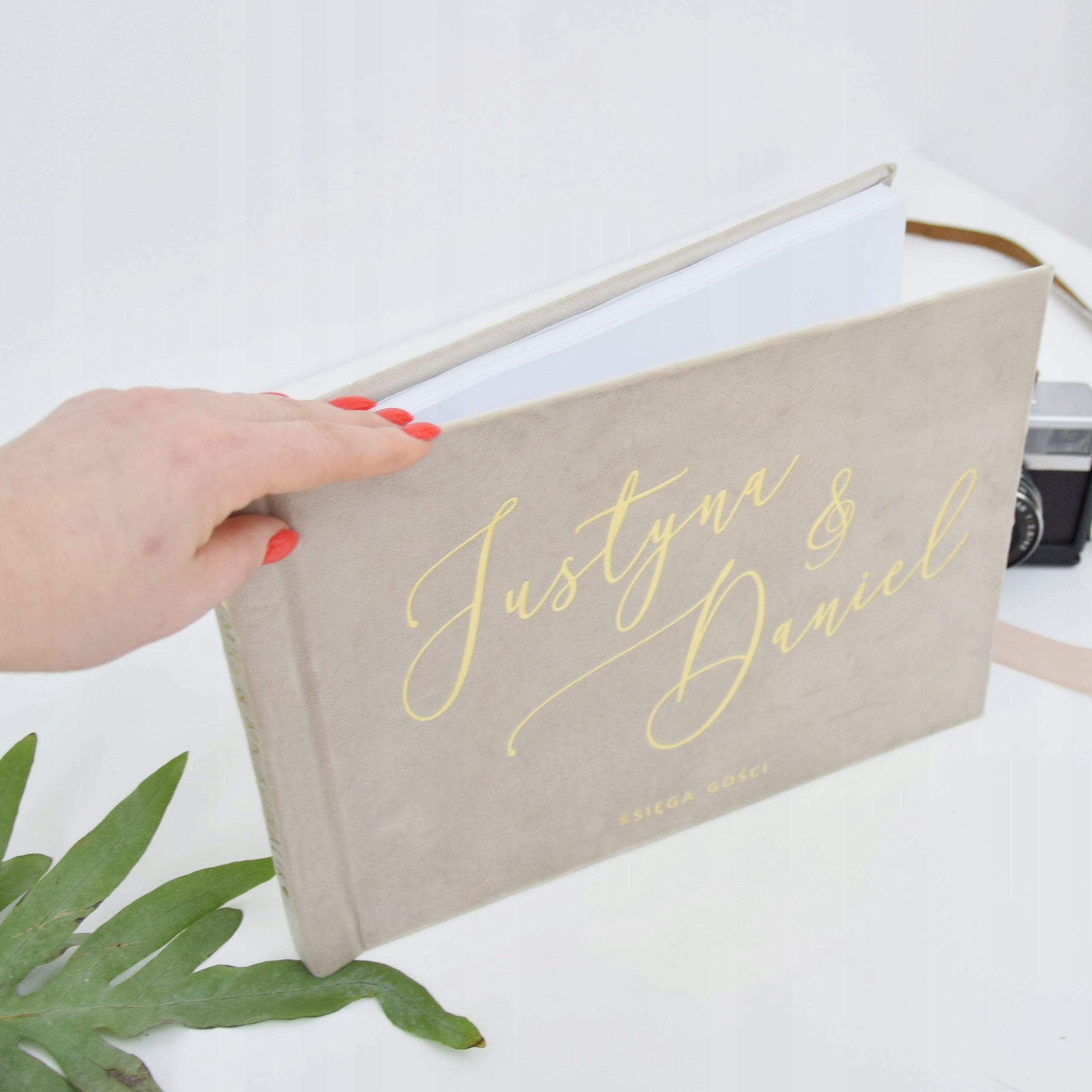 Велюр, персоналізована обкладинка, красива стрічка та листівки, які чекають на слова ваших гостей.