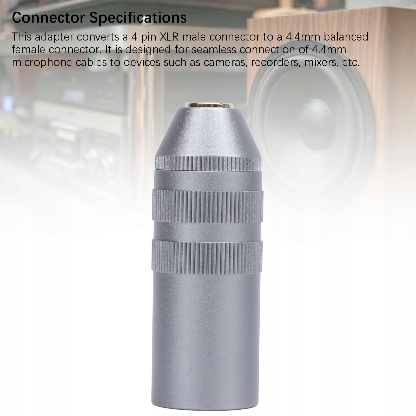 1. Підключення специфікацій: Цей адаптер перетворює 4 -файл чоловічого роз'єму XLR в збалансований жіночий 4,4 мм роз'єм. Він призначений для проблем з безпроблемним підключенням 4,4 мм мікрофонних кабелів до таких пристроїв, як камери, диктофон, змішувачі тощо