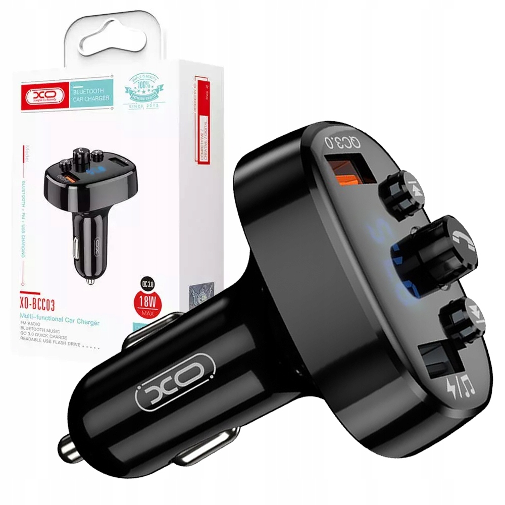 XO FM-трансмітер BCC03 Bluetooth MP3 автомобільний зарядний пристрій 18W чорний
