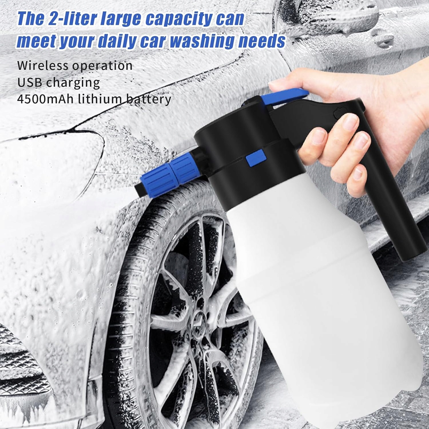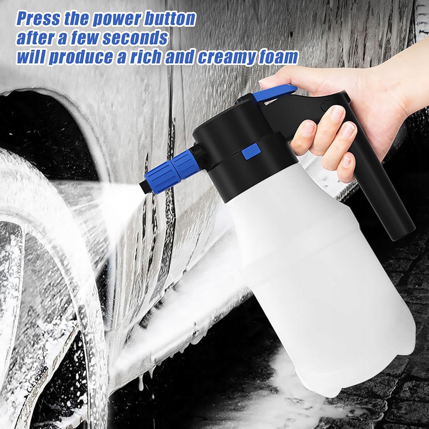 Універсальність: Це чудово підходить для миття та деталей автомобілів, чищення коліс, вікна, мотоцикл та велосипед. Налашники насосів також підходять для поливу садових рослин та домашніх рослин. Підходить для різних сценаріїв, простих у використанні, універсальних та простих у розпилюванні. Товста піна: електричний тиск є більш стійким і повністю емульгованим, піна є більш рівномірною і ніжною, а бруд ефективно розчиняється. Забезпечує чудові, ефективні результати очищення кожного разу. Висока потужність: висока 1,5 літра може задовольнити ваші щоденні потреби в галузі миття автомобілів. Широкий отвір дозволяє легко заповнити рідини і запобігає розливу. Тіло чайника виготовлено з високосталового матеріалу PE, який дуже довговічний. Подаруйте собі комфорт, не капаючи завдяки ідеальному, тісному дизайну. Операція з одним дотиком: пінопласт має кнопку комутації/вимкнення. Після дотику пальця перемикачів, пляшка з пінопласту почне працювати через кілька секунд, а тиск стабілізуватиметься приблизно в 2 бар. Простий у використанні, зручні та довговічні. Бездротова машина для електричного автомобіля: Порт зарядки цього розпилювача електричної піни знаходиться у тримачі пляшок. Ви можете використовувати USB для зарядки, а після повного заряду він може розпорошувати на 20-30 хвилин.