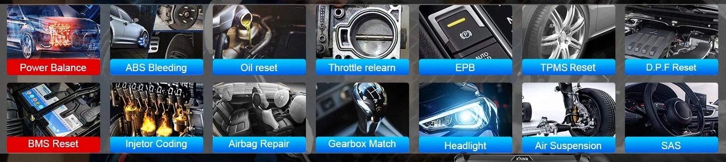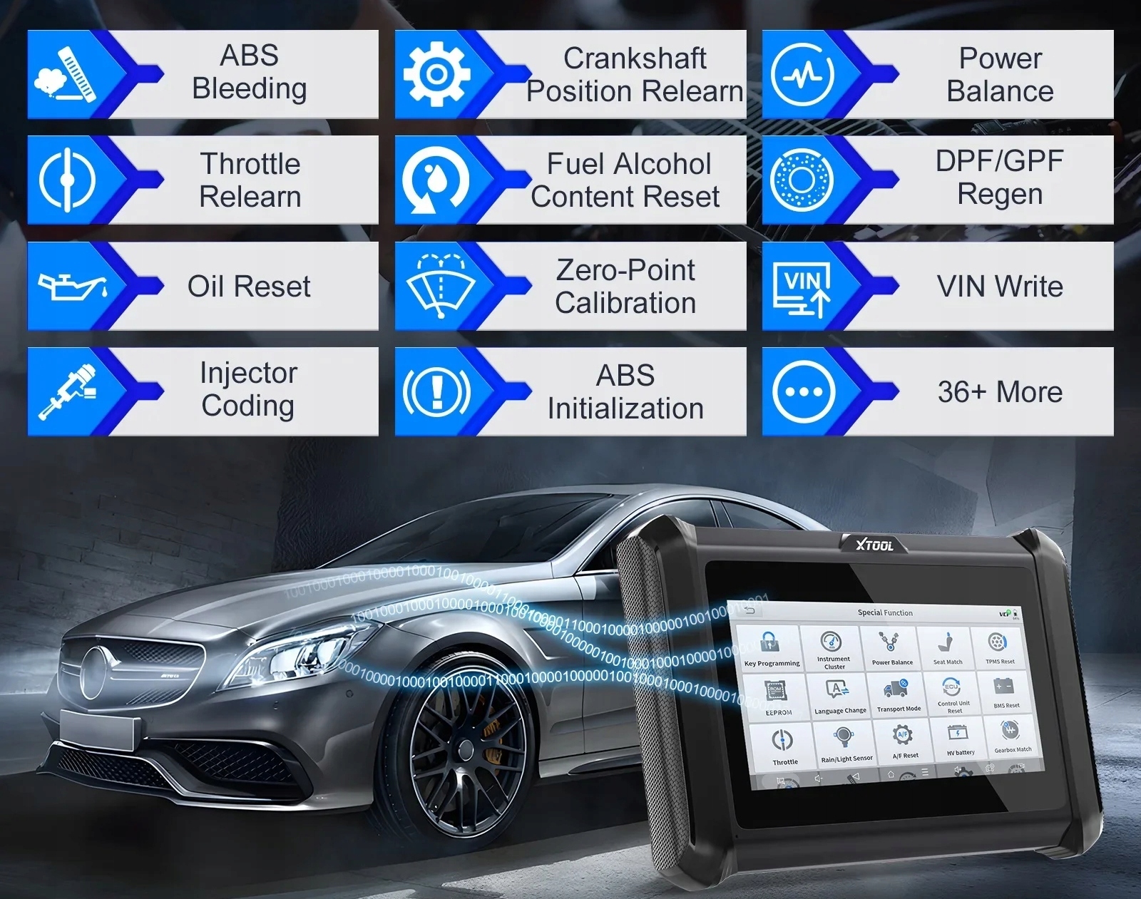 - 36+ сервісних функцій: включаючи скидання масла, EPB, калібрування SAS, регенерацію DPF, кодування інжектора, скидання BMS, прокачування ABS тощо.