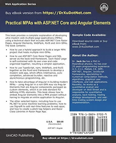 Ця книга надає всі інструменти, необхідні для розробки надучасних додатків для декількох сторінок (MPA) за допомогою сторінок ASP.NET Core Razor, кутових елементів, WebPack, RXJS та Mini-Spas (односторонні програми). Це буде корисно для веб-програмістів, розробників бізнесу та студентів усіх рівнів навичок, які зацікавлені у розробках веб-опіків. Ця книга вчить, як створити сучасний веб-сайт/додаток. Ведучий один або кілька Mini-Spas у більшій кількості веб-додатків. Він показує, як розділити веб -додаток INO функціональні частини та перетворити кожну функціональну частину у власний спа -центр. Ці міні-спаси разом утворюють повну програму з декількома сторінками. Для кожного міні -спа ми використовуємо просту систему маршрутизації JavaScript для організації станів програми та перемикання між різними видами, переглянувши зміни в URL -адресі. Технічний стек для бекенду складається з системи експлуатації, веб -сервера, бази даних та логіки програмування. Ця книга вибирає сторінки ASP.NET Core Razor та SQL Server як бекенд -рамки. Сторінка бритви складається з подання бритви та коду за файлом. Кожна сторінка бритви є самодостатньою з власним переглядом та кодом, організованими разом, що призводить до більш простих і продуктивних сценаріїв, орієнтованих на кодування сторінок. Компоненти переднього кінця дозволяють інтерактивно користувачеві з веб-додатком. У цій книзі ми вибираємо TypeScript, NPM, WebPack, RXJS та Angular як наш технічний стек. TypeScript - це сучасна мова розробки JavaScript, яка забезпечує додаткову перевірку статичного типу, класи та інтерфейси. Він також пропонує розширений інтелект, автоматичну комісію, навігацію та рефакторинг, що полегшує читання та розуміння коду. Webpack - це пакет, і він стане в нагоді, коли вам потрібно упакувати кілька активів до графіку Dedenendency. Існує зростаюча тенденція до використання WebPack, оскільки це може бути повним фактом, що ви зможете виконати продуктивність за допомогою бігуна завдань. RXJS-це бібліотека для реактивного програмування з використанням спостережувань, що дозволяє легко скласти асинхронний або код на основі зворотного дзвінка. Ця книга пояснить, як використовувати всі ці технології разом для створення сучасного веб-додатку. Angular-популярна фронтальна рамка JavaScript. Незважаючи на те, що він використовується для розробки спа-центрів, ми все ще можемо скористатися цією рамкою у створенні сучасних веб-додатків з декількома сторінками, тобто ми можемо використовувати не-спа-способу за допомогою кутових елементів. Кутові елементи-це кутові компоненти, упаковані як спеціальні елементи, веб-стандарт для визначення нових елементів HTML в рамках-агностичному способі. Ця книга показує, як вбудувати кутові елементи в наш сучасний проект MPA, який повинен перемістити цілу програму до кутового. Ця книга також включає інші розбиті теми, включаючи, як використовувати Microsoft ML.NET для вирішення проблем з машинним навчанням, сухий як класифікацію, відпочинок та кластеризацію; Як створити різні діаграми та графіки за допомогою echarts; Як використовувати SignalR для додавання функцій у режимі реального часу до своїх веб-додатків; Як користуватися ін'єкцією Dedenendency та як творити помічники тегів та бібліотеки класів бритви на сторінках бритви.