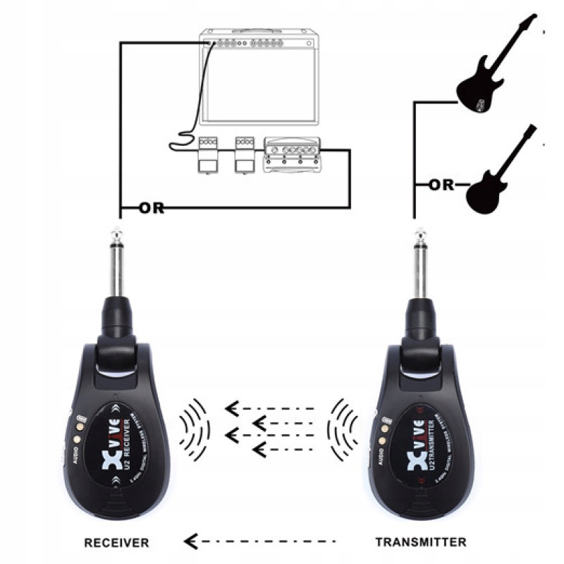Система XVive U2 - це цифрова бездротова технологія, яка забезпечує чудову якість звуку, просту установку та високу зручність для кожної активної музики. Приймач і передавач переносять повну смугу сигналу (від 20 Гц до 20 кГц) із затримкою на рівні лише 6 мс. Для того, щоб сигнал вільно поширювався, ця бездротова система працює з частотою 2,4 ГГц ISM, забезпечуючи цілісність на сцені. Діапазон роботи без перешкод становить 30 м. Літій-іонні батареї роблять U2 екологічно чистими. Реле здатні працювати до 5 годин за одним зарядом. Корпус виготовлений з довговічного пластику ABS, який буде терпіти труднощі маршруту та складних кліматичних умов. Завдяки компактній та простої формі, цей набір добре поєднується з кожною педальною. Попрощайтеся з кабелями - за допомогою системи XVive U2 ви отримаєте свободу рухатися навколо сцени.