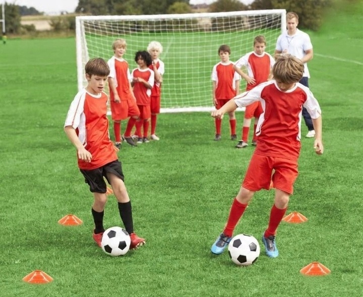 ⚽️ 12 футбольних конусів – розмістіть їх на полі та займайтеся слаломом! Ви також можете використовувати їх, щоб позначити лінію старту та фінішу та почати біг.
