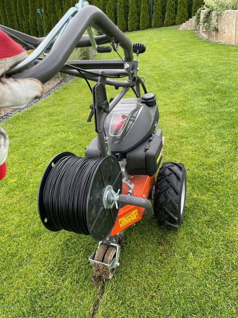 Кабель, прикріплений до землі шпильками, приблизно через місяць заростає травою та стає непомітним.