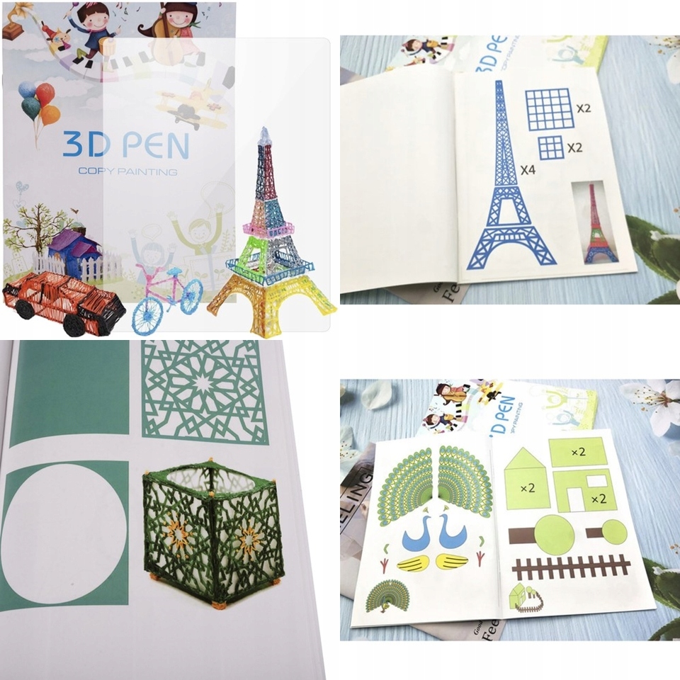 У набір входить ручка - 3D ручка, антиопікові наконечники, кабель живлення та 150 м ниток 30 різних кольорів (30x5 м), книга з шаблонами та інструкцією ПОЛЬСЬКОЮ!