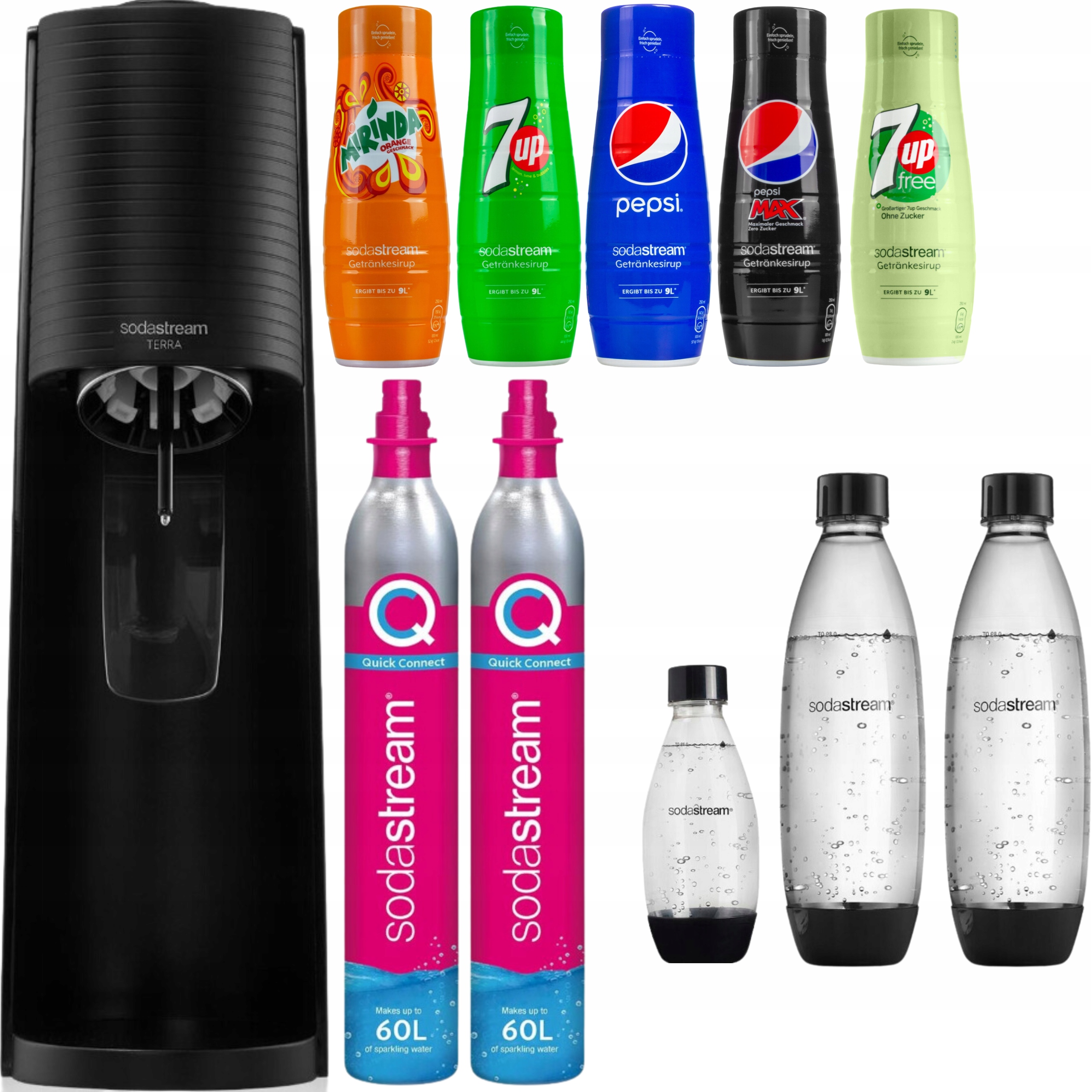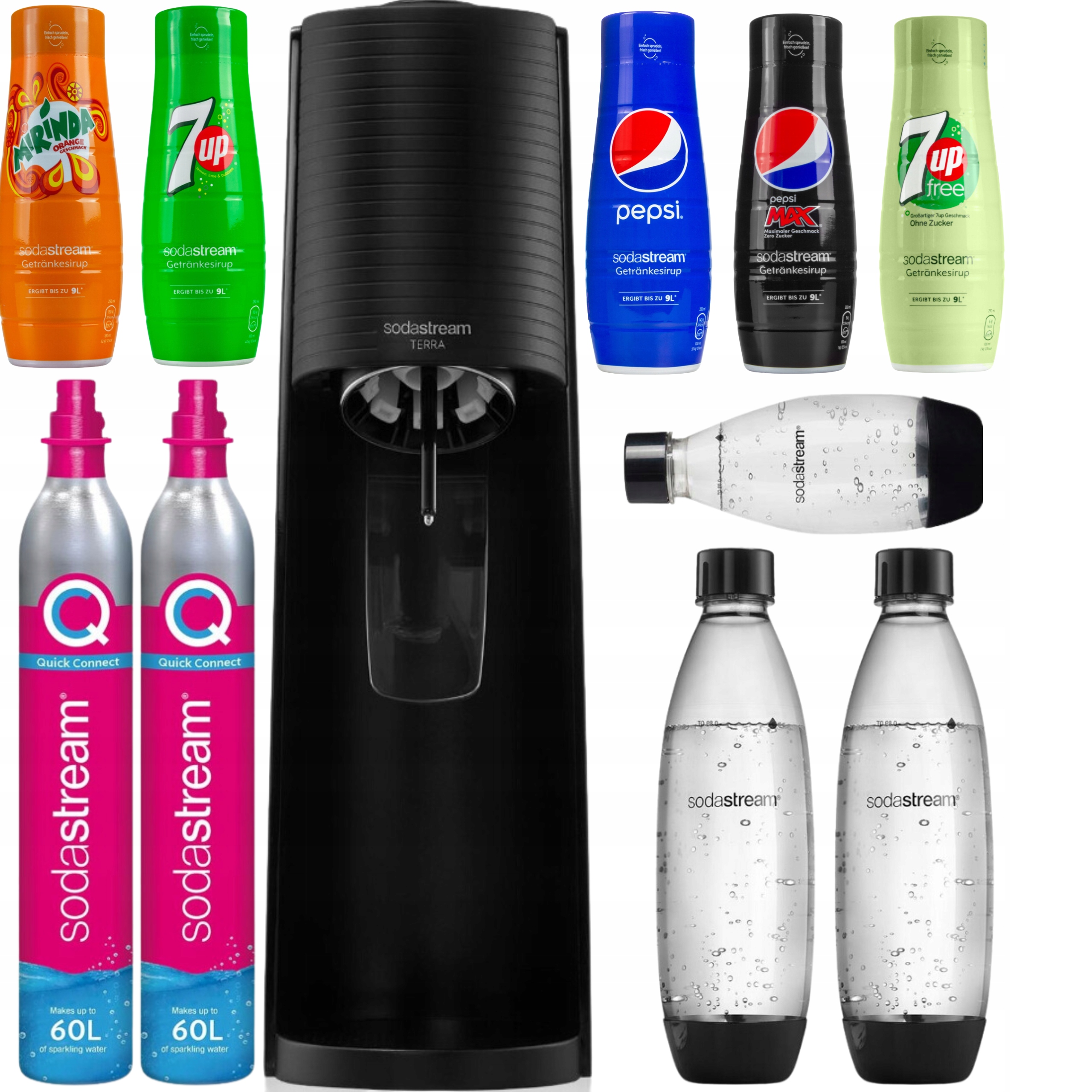 XXL НАБІР НАСИЧНИК SODASTREAM ПЛЯШКИ СИРОПИ CO2 КАРТРИДЖ РІЗНІ СМАКИ 11в1
