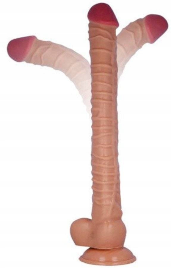 Величезного розміру пеніс на присосці. Екстремальна іграшка, яка справляє приголомшливе враження на людей, які люблять глибоке проникнення. Фалоімітатор має велику присоску і реалістичні яєчка. Виготовлений з безпечного та гіпоалергенного матеріалу. Спеціальний контур, який покращує враження. Він має численні вени по всій довжині і виглядає як справжній пеніс.