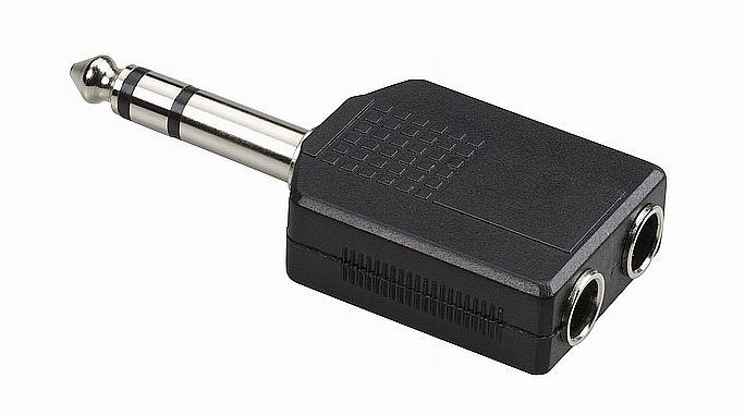 - Адаптер 1x великий штекер JACK 6,35 мм <–> 2x великий роз’єм JACK 6,35 мм стерео.
