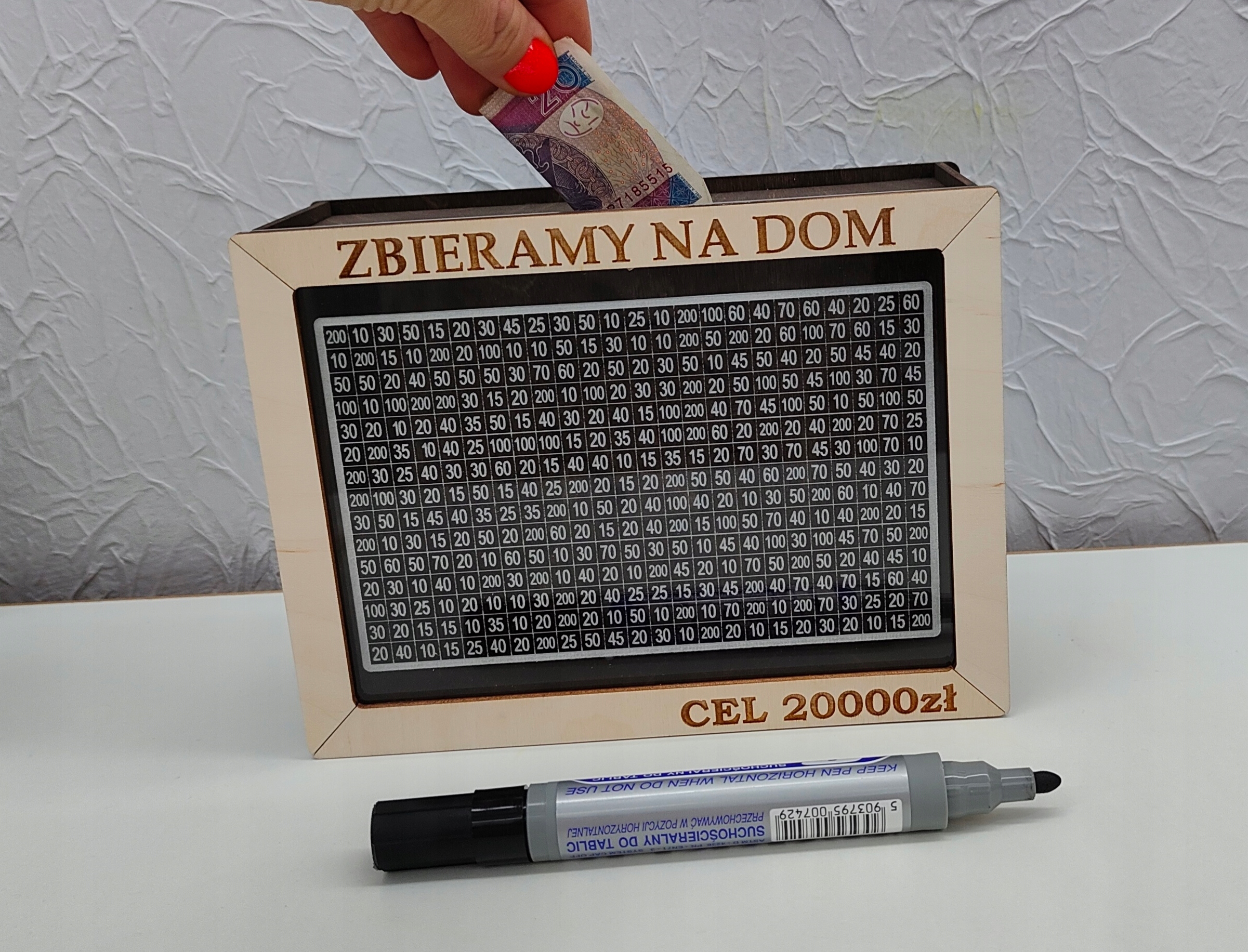 Свинячий банк функціонує, оскільки він відіграє роль перехресної країни. Наприклад, PLN 20 та вийміть їх із гравірованого списку. Якщо ви позначаєте, наприклад, x всі квадрати, це означає, що ви досягли мети і зібрали всі передбачувані кошти :) Візьміть нашу магічну губку та решітку X. Почніть знову збирати :)