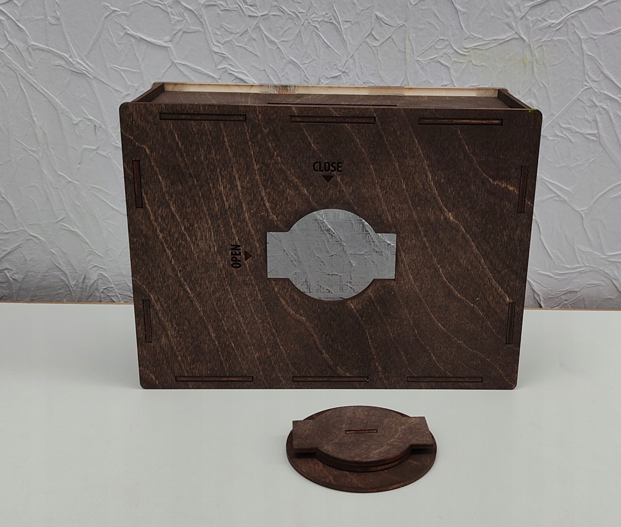 Смальський банк виготовлений з 3 -мм фанери, просоченої в Палісандру. Крім того, кадр виготовлений з 3 -мм фанери, на якій ми граємо ваш текст/ціль.