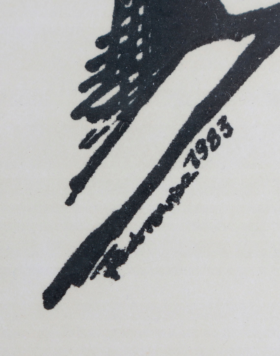 Техніка: сінографія / папір. Робота підписана олівцем у нижній частині композиції.