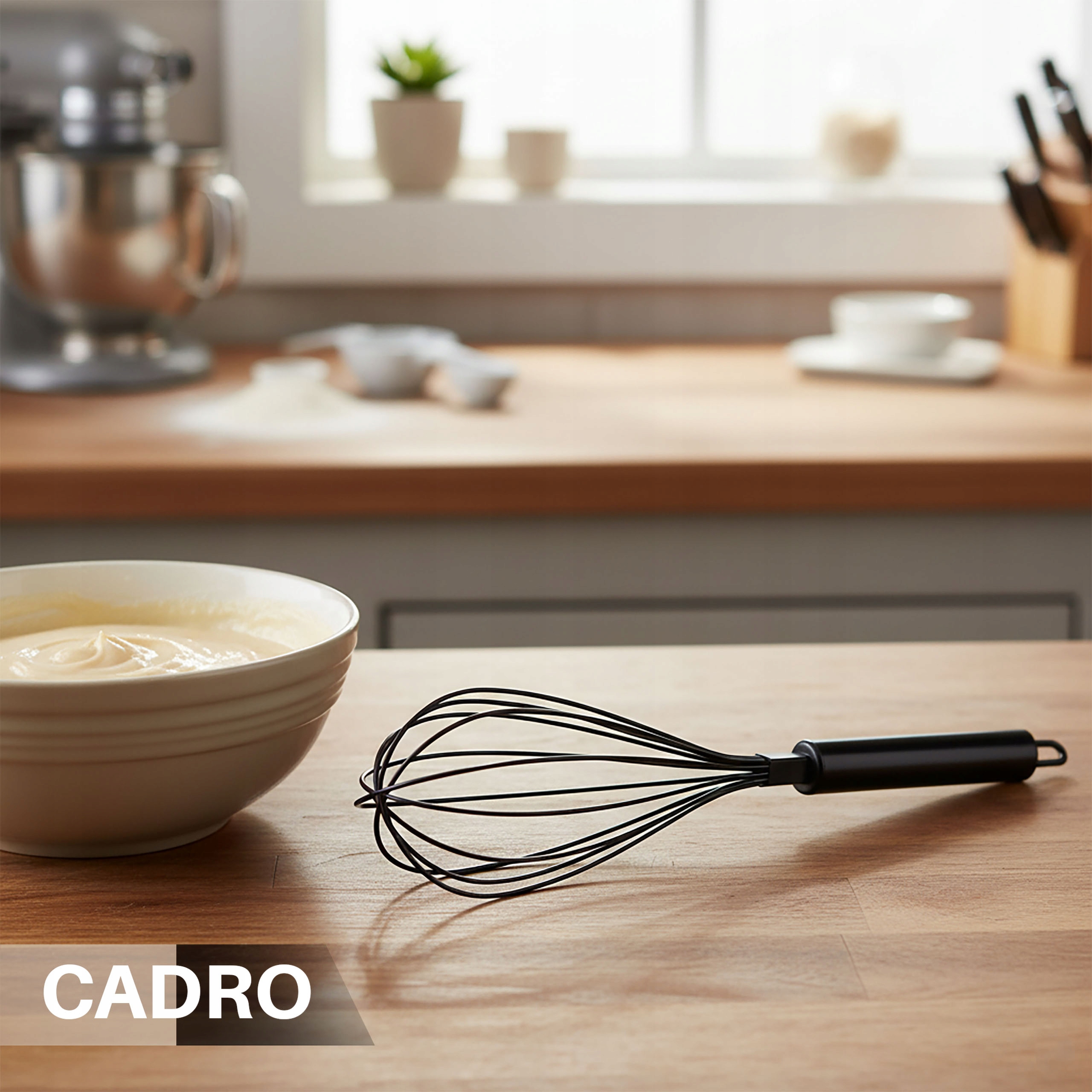 ta яєчний віночок для яєць та бідність з піни - необхідний аксесуар на кожній кухні. Виготовлений з нержавіючої сталі 430 з чорним покриттям , поєднує міцність, елегантний вигляд та функціональність. Завдяки довжині 29 см Це дозволяє зручно збивати яйця, піну, вершки або соуси. Він також має підвіску , що полегшує зберігання. Світло , зручне та довговічне - воно буде працювати як у повсякденній кулінарії, так і з більш вимогливою випічкою.