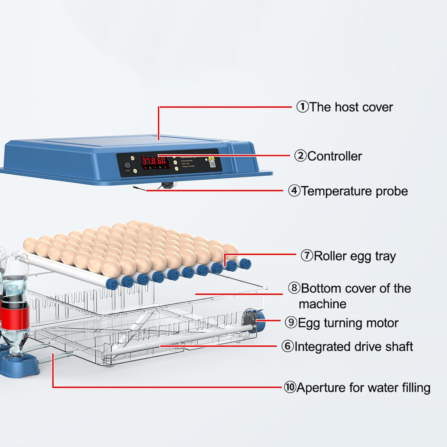 • Автоматичне обертання яєць - навіть нагрівання та розвиток ембріонів