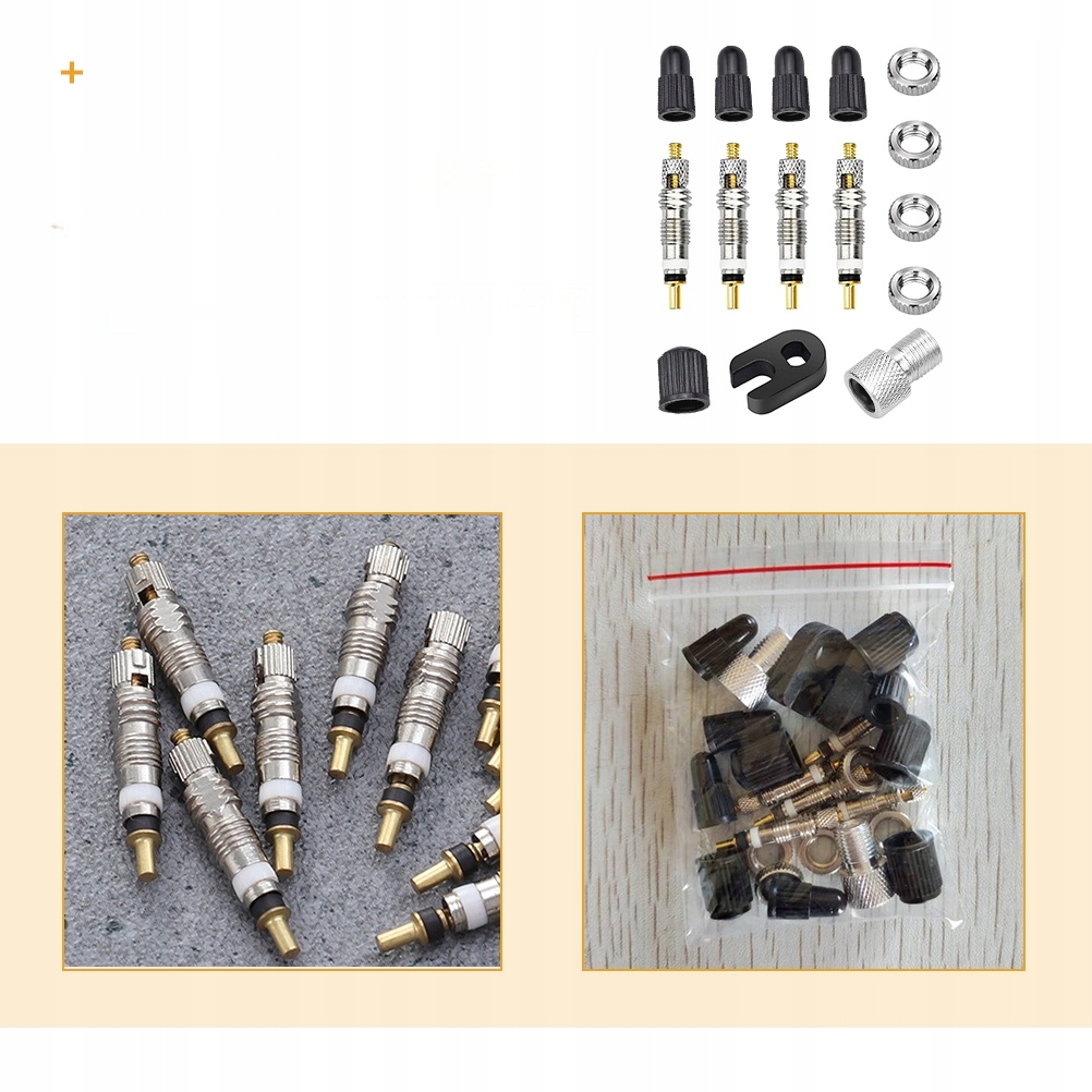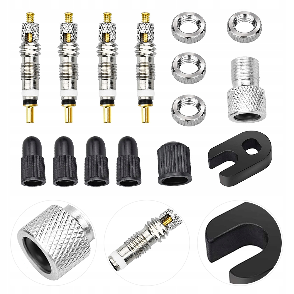 ✅4 x клапани шпівнях 4 x клапани, що захищають 4 x гайки ободів 1 x клапани плоска клавіша 1 x адаптер клапана автомобіля 1 x захисна кришка