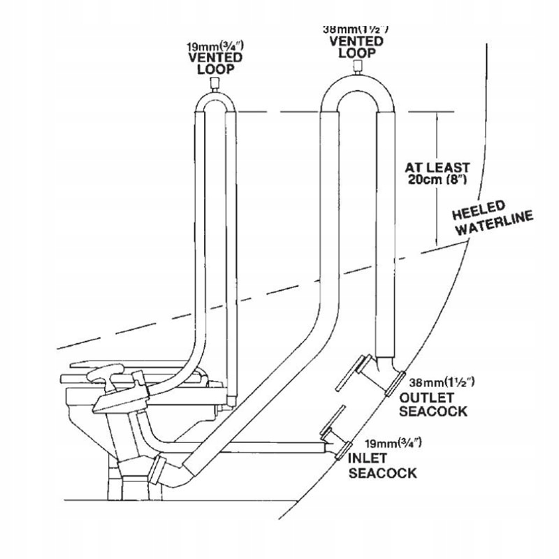 Шпон для яхт -туалетів та плаваючі сантехніки. Він використовується в вхідних та вихідних установах, особливо в туалетах, встановлених нижче статичної або п’ятної лінії води. Основне його завдання - запобігти потраплянню води в гідравлічні петлі, що може призвести до затоплення або відмови системи.