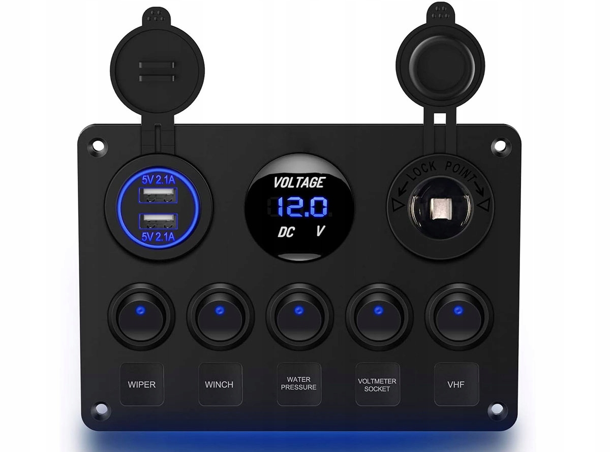 ЯХТОВИЙ РОЗПОДІЛ 5 ПОЗ. ВОЛЬТМЕТР, USB- 04873