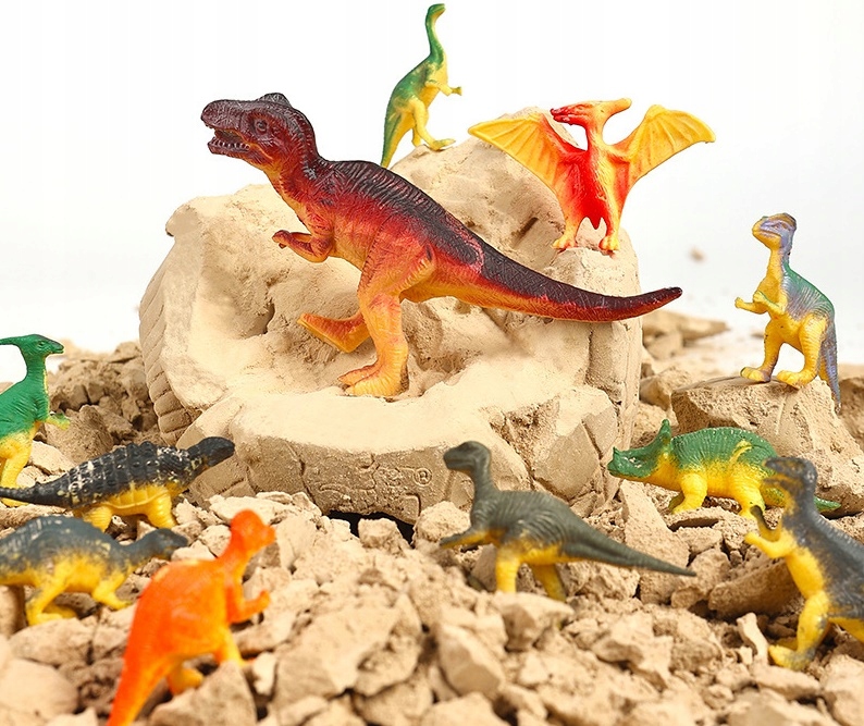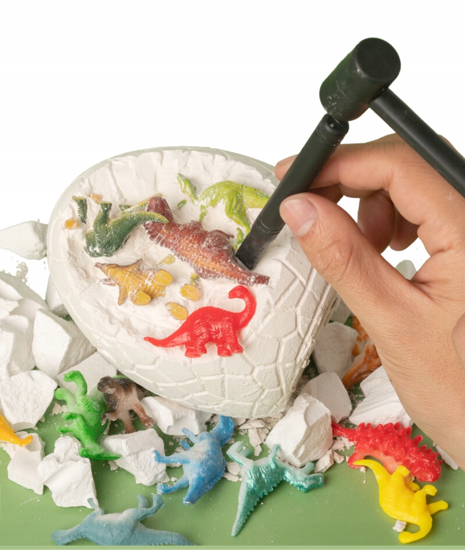✅ гіпсове яйце✅ молоток-зубило з гострим кінцем✅ щітка для очищення сюрпризу✅ 14 фігурок динозаврів ✅ 12 карток динозаврів.