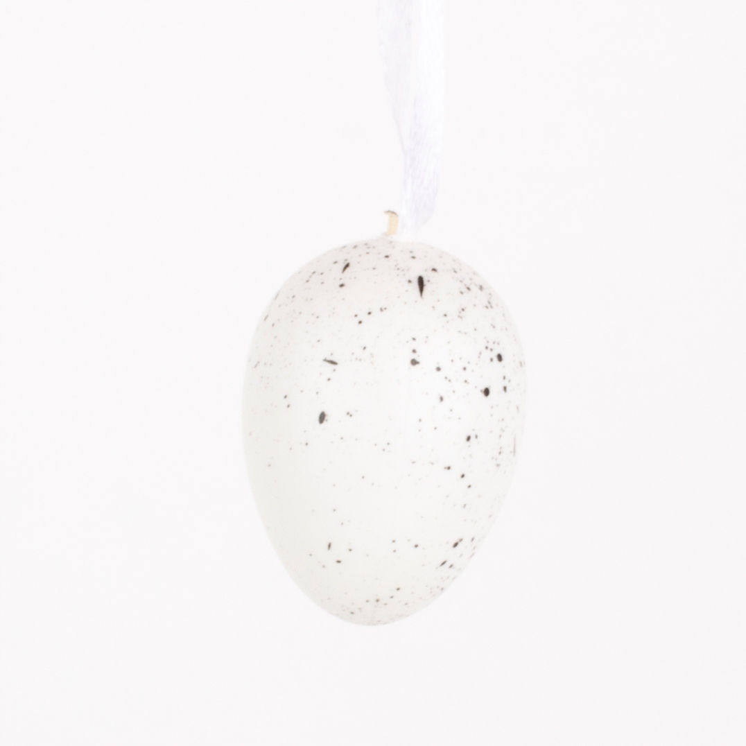 Білі, декоративні, крапчасті яйця для підвіски - ідеальна прикраса для Великодня. Вони ідеально вписуються в будь -яку декоративну композицію. Завдяки ніжному плеску, вони мають дуже природний вигляд.