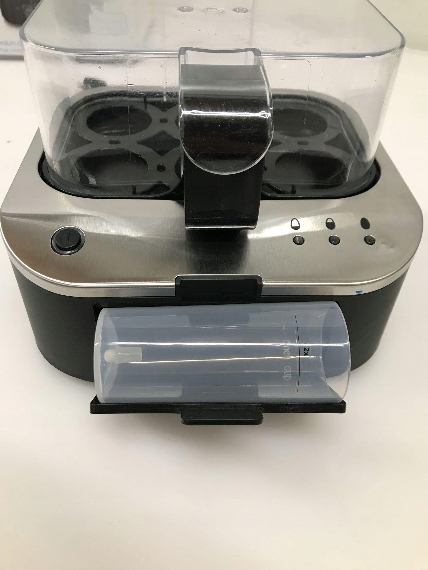 Мірна чашка з проколювачем для яєць вбудована в пристрій, щоб вона завжди була під рукою