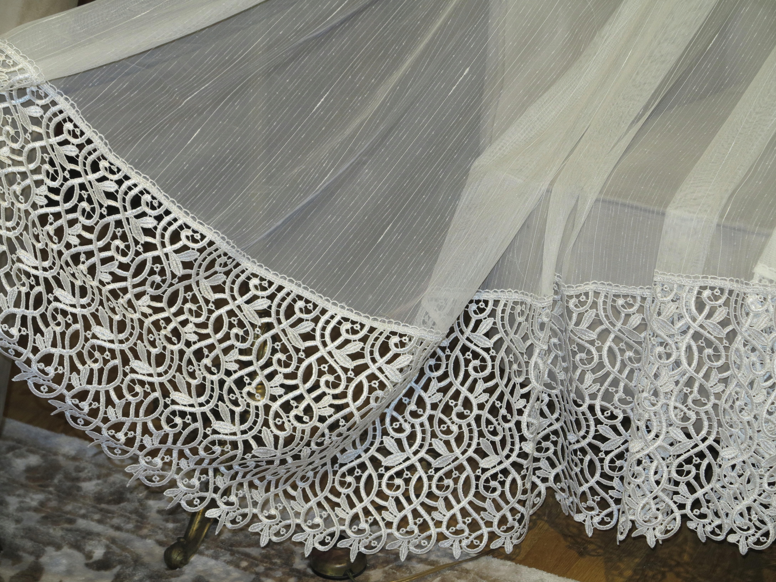 Предметом аукціону є красива штора з щільним, перламутровим гіпюром, вирізаним тонкою дугою. Світлий колір екрю. Штора б/в, у відмінному стані та якості. Рекомендую.