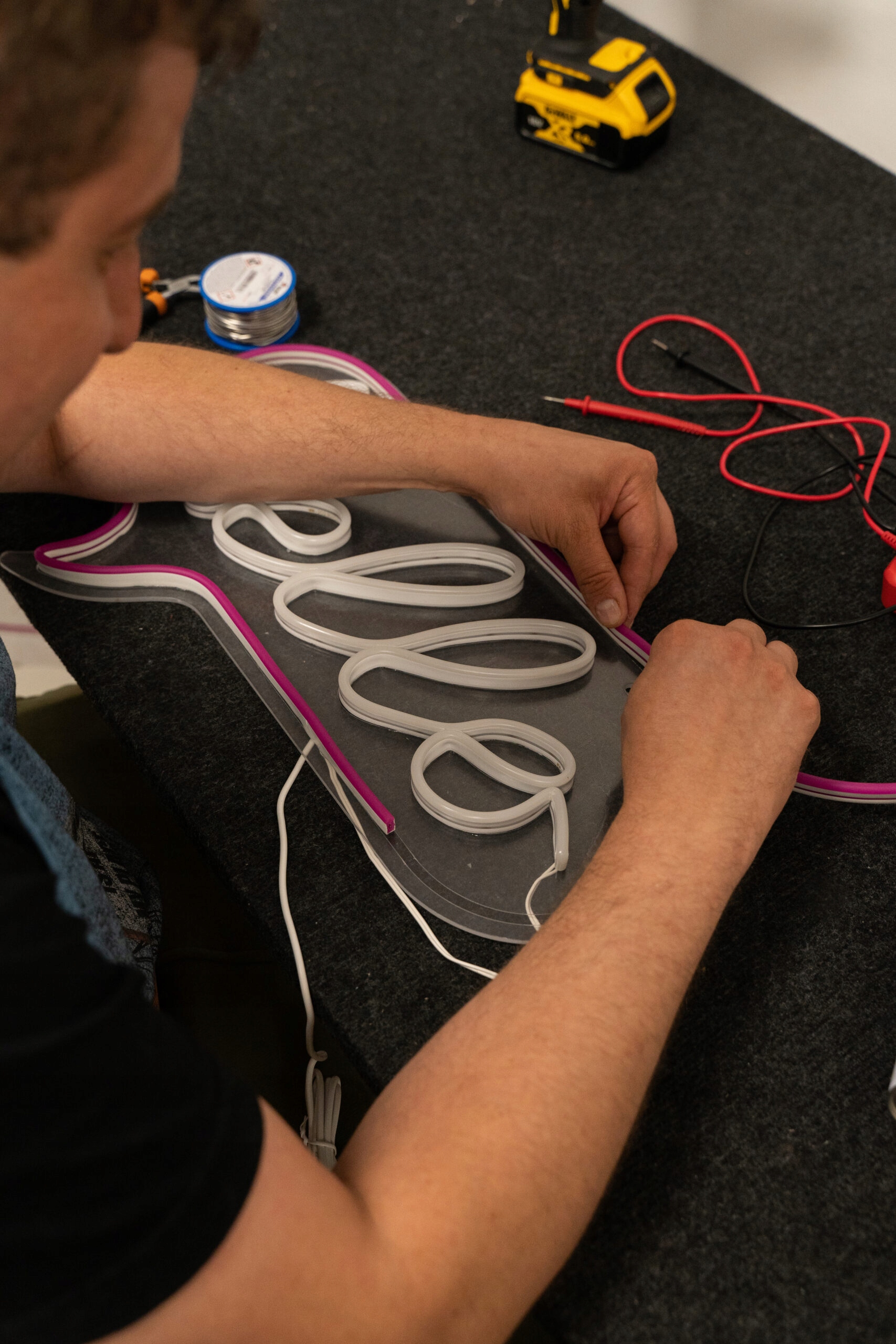 Світлодіодний напис Together Better за допомогою світлодіодної стрічки з силіконовим покриттям на прозорій основі з оргскла.