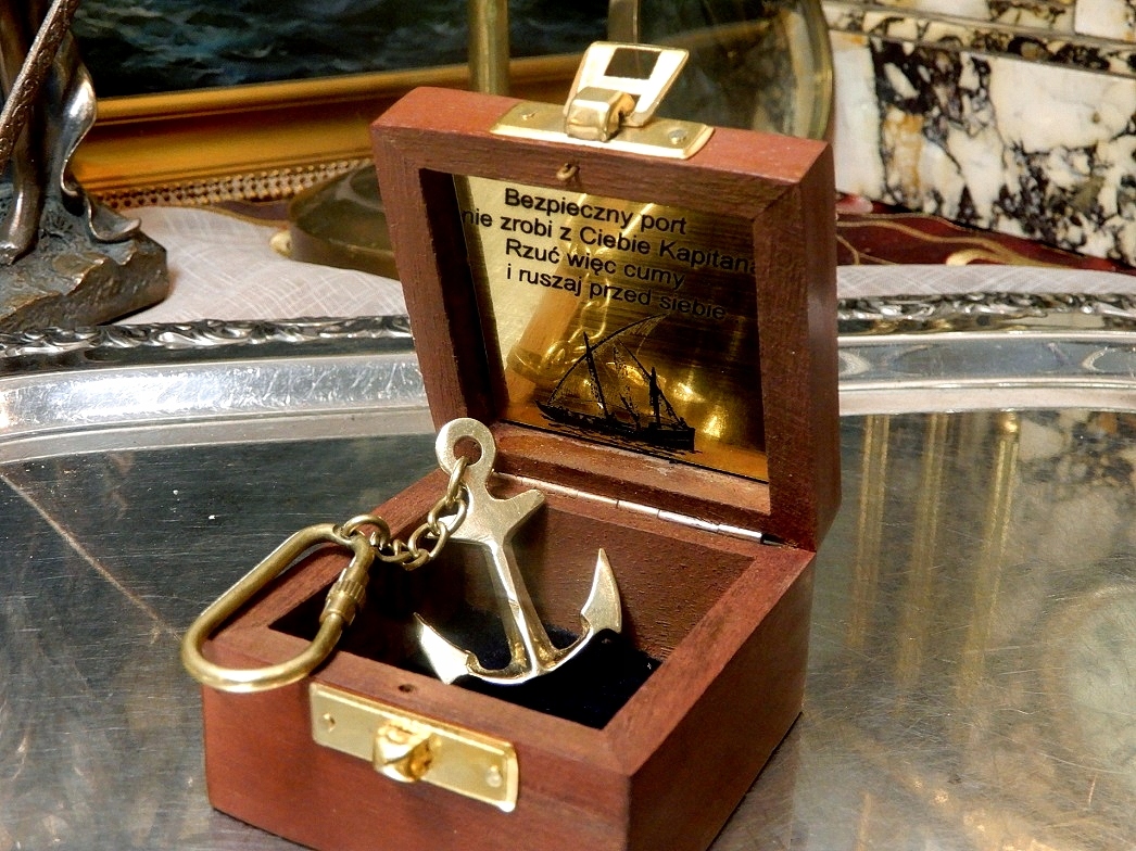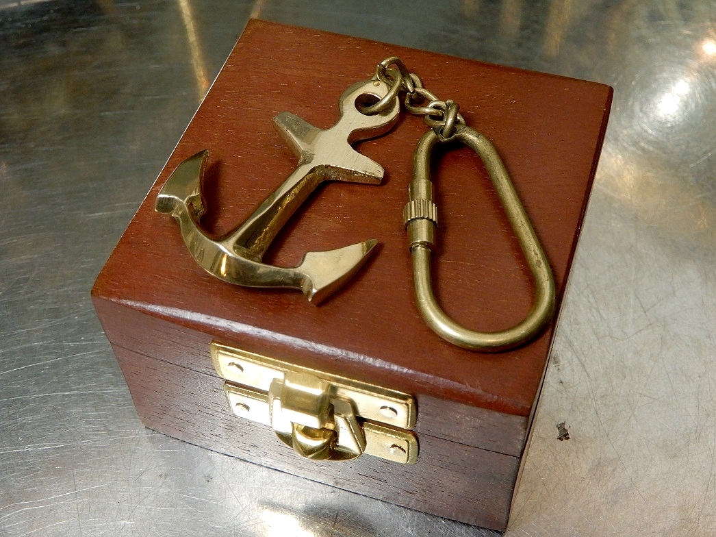 Запрошую вас придбати гарний латунний брелок-якір в коробці з палісандрового дерева (палісандр) з якорем на кришці або з дерева акації на ваш вибір.
