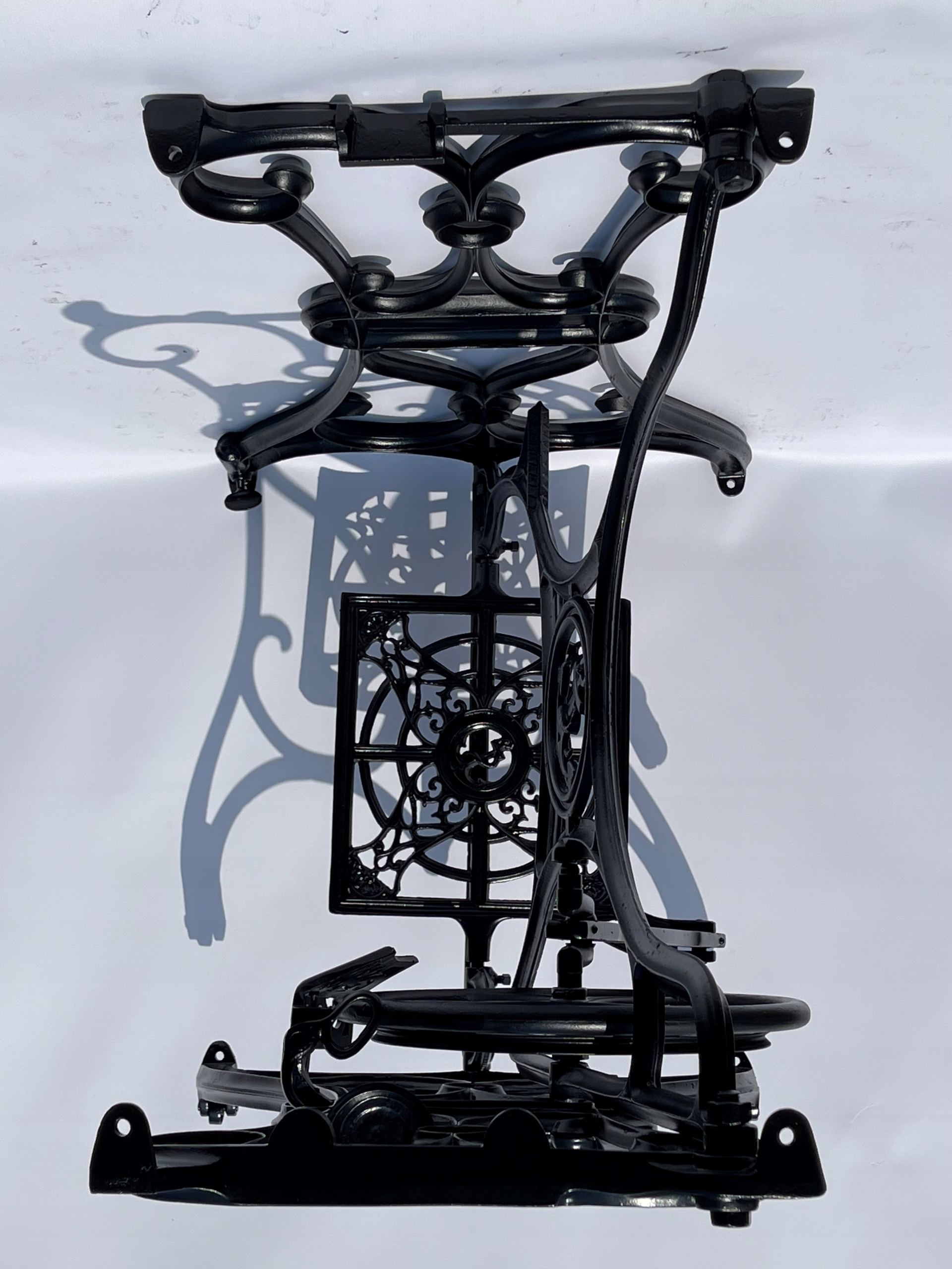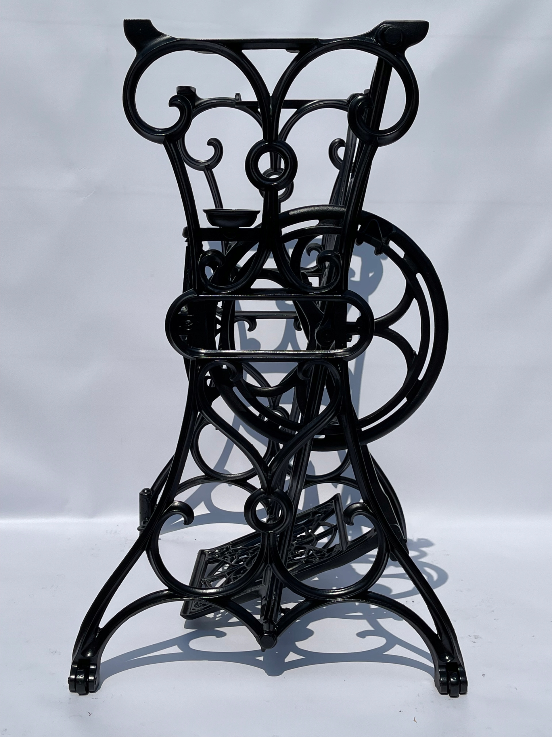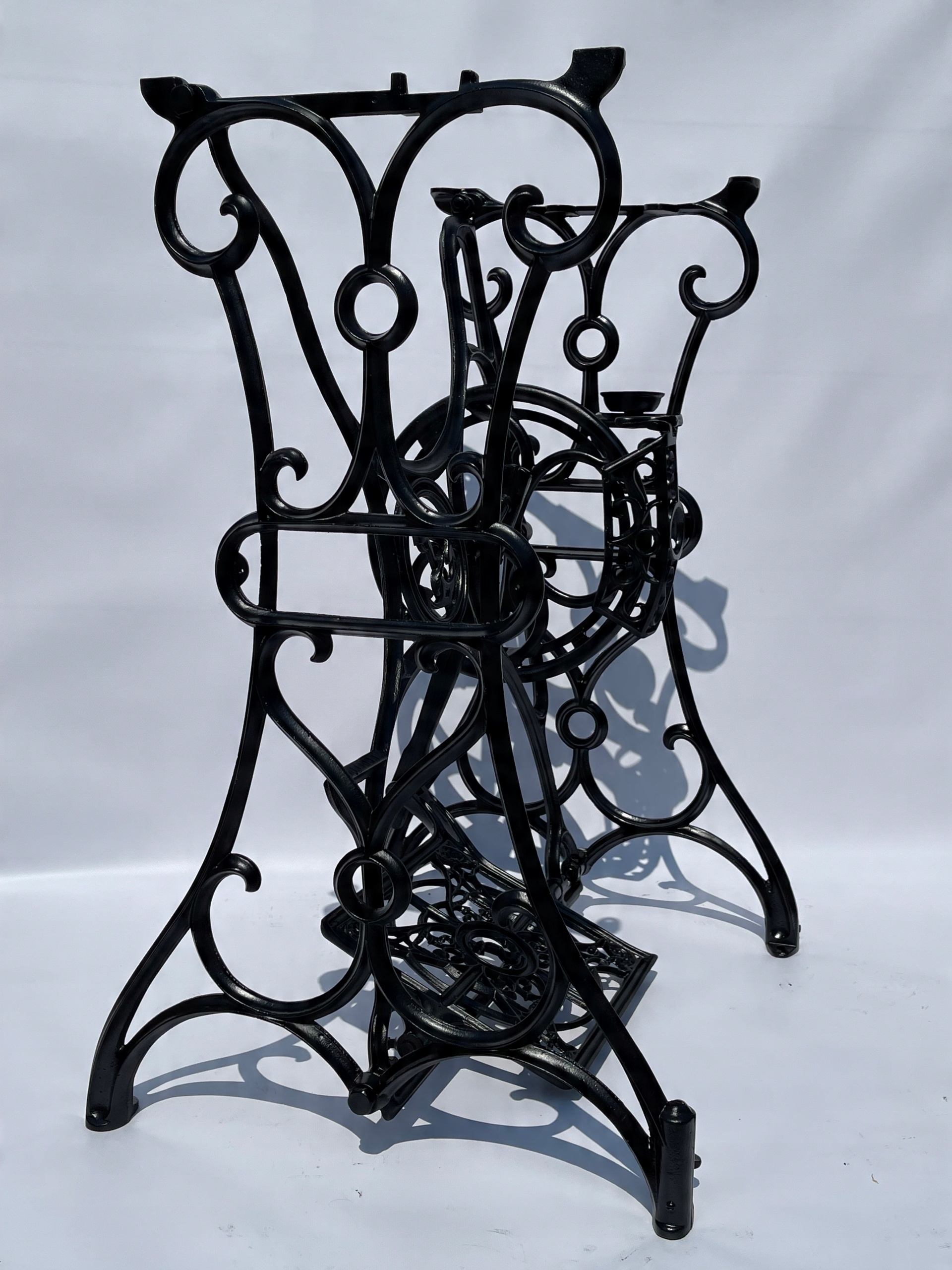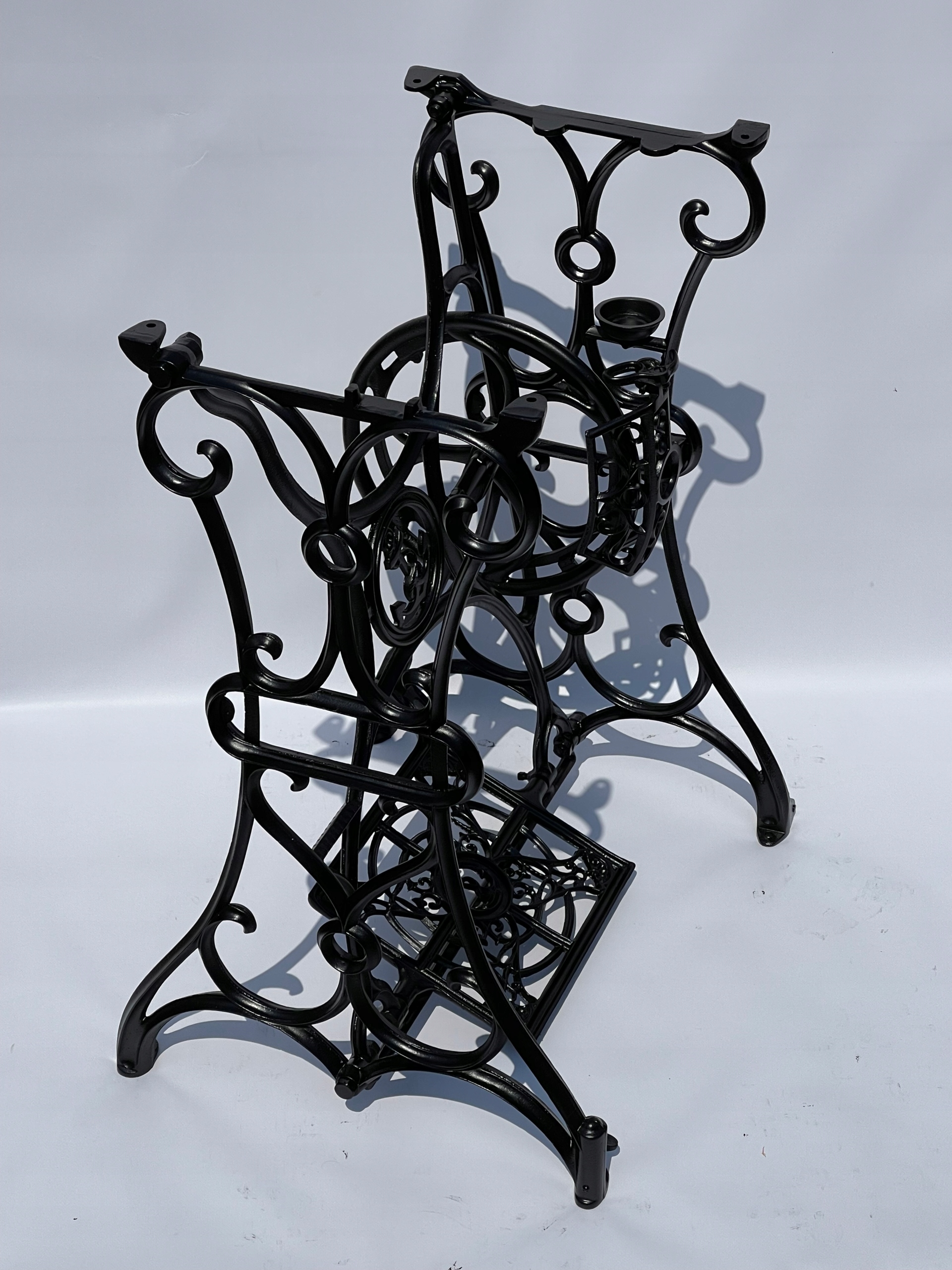Верхня частина має 4 оригінальні отвори, до яких можна прикріпити верхню частину. Це видно на останньому фото. Стан - після професійного ремонту. Піскоструменева і пофарбована в чорний колір, як на фото - готова до установки. Після додавання стільниці його можна використовувати як комп’ютерний стіл, столик під телевізор, балконний столик, столик для тераси тощо. Це оригінальний предмет із Нижньої Сілезії. Якщо ви шукаєте щось оригінальне, цей аукціон саме для вас