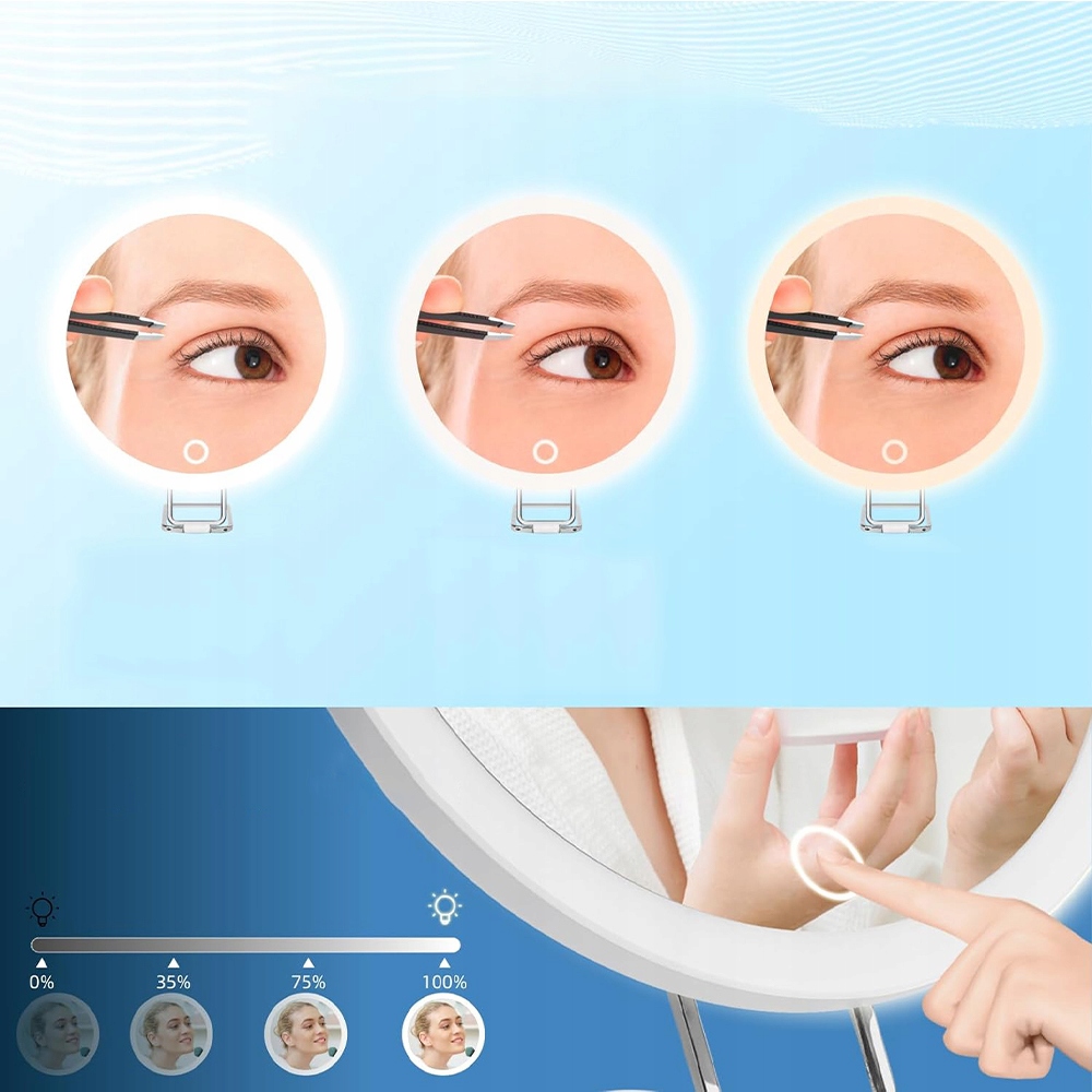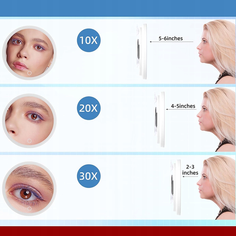 ✔ lupa, портативне, освітлене дзеркало з збільшенням 30 разів з 3 різними режимами освітлення: холодне світло, тепле світло і природне світло. Одиночна кнопка кнопки сенсорної кнопки змінює колір світла, а довге натискання дозволяє плавно регулювати яскравість. Функція пам'яті LED журналу пам’ятає останню яскравість та колір світла. Ідеальне розширення дзеркала для макіяжу, корисне для подорожей або в кемпінгу. 4 Дзеркало з 30 -кратним освітленням можна пилососити на будь -якій гладкій поверхні і використовувати як ручне, стіл або підвісне дзеркало.