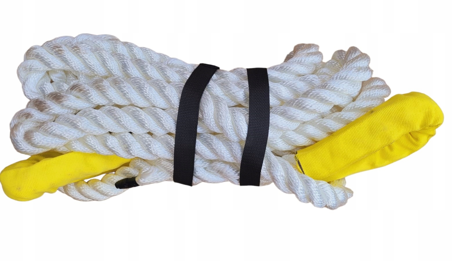 - Мотузки, які ми продаємо, виготовлені з тонких, дуже міцних волокон, завдяки чому сила розриву (16 т) є реальною, а розтяжність становить понад 30%. Мотузка має стійкі до стирання петлі з обох сторін ТОВЩИНА БІЛЬШЕ 28 мм