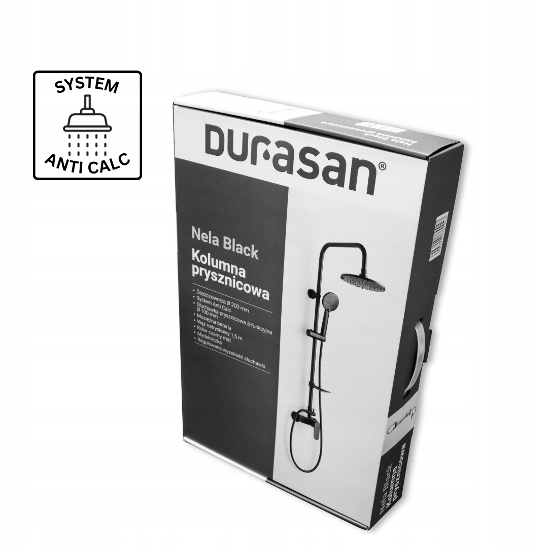 Душовий гарнітур Durasan NELA BLACK - це елегантне та функціональне рішення для вашої ванної кімнати. Відрізняється сучасним дизайном і високою якістю виготовлення, що забезпечує тривале використання. Виготовлений з міцної латуні, він стійкий до корозії та механічних пошкоджень. У комплект входить одноважільний змішувач, душова колонка, трубка, шланг і тропічний душ, що гарантує повний комфорт під час щоденного купання. Матове покриття додає елегантності та сучасного вигляду, ідеально пасуючи до будь-якої ванної кімнати.