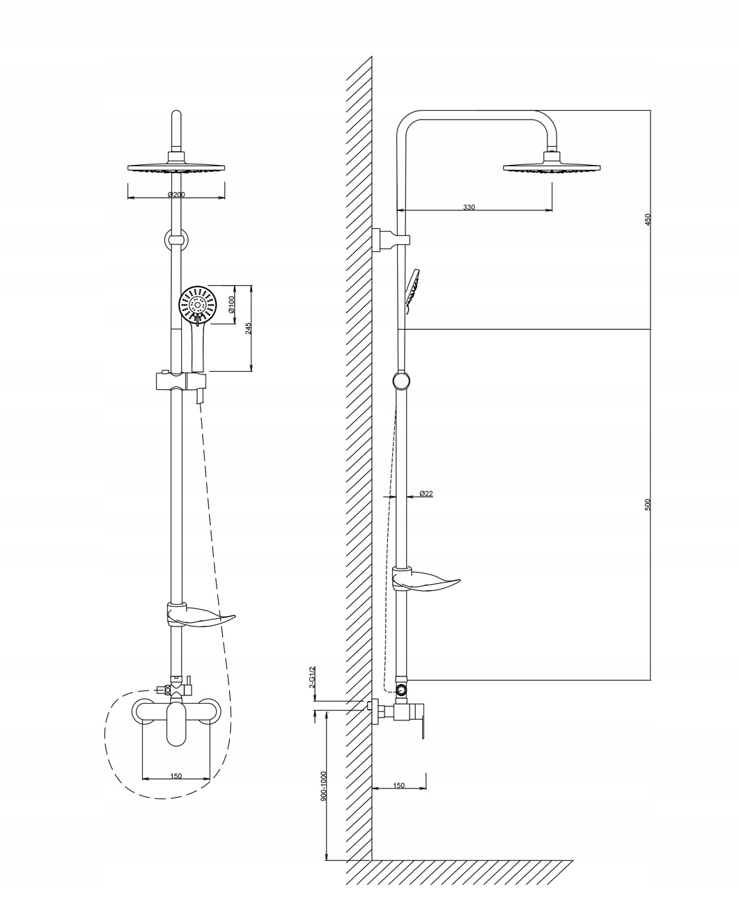 ЯКІСТЬ Душовий гарнітур, душова колонка, RAIN SHOWER, накладна, чорний