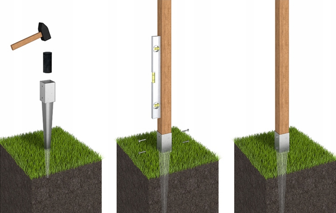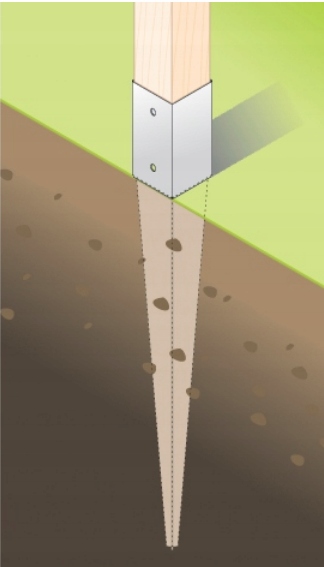 Основа вбита стовпа використовується для кріплення в землю дерев'яних стовпів, ламельних огорож, альтанок, пергол, дровняків, будиночків для інструментів, дитячих майданчиків. , без необхідності закріплення анкерів у бетоні.