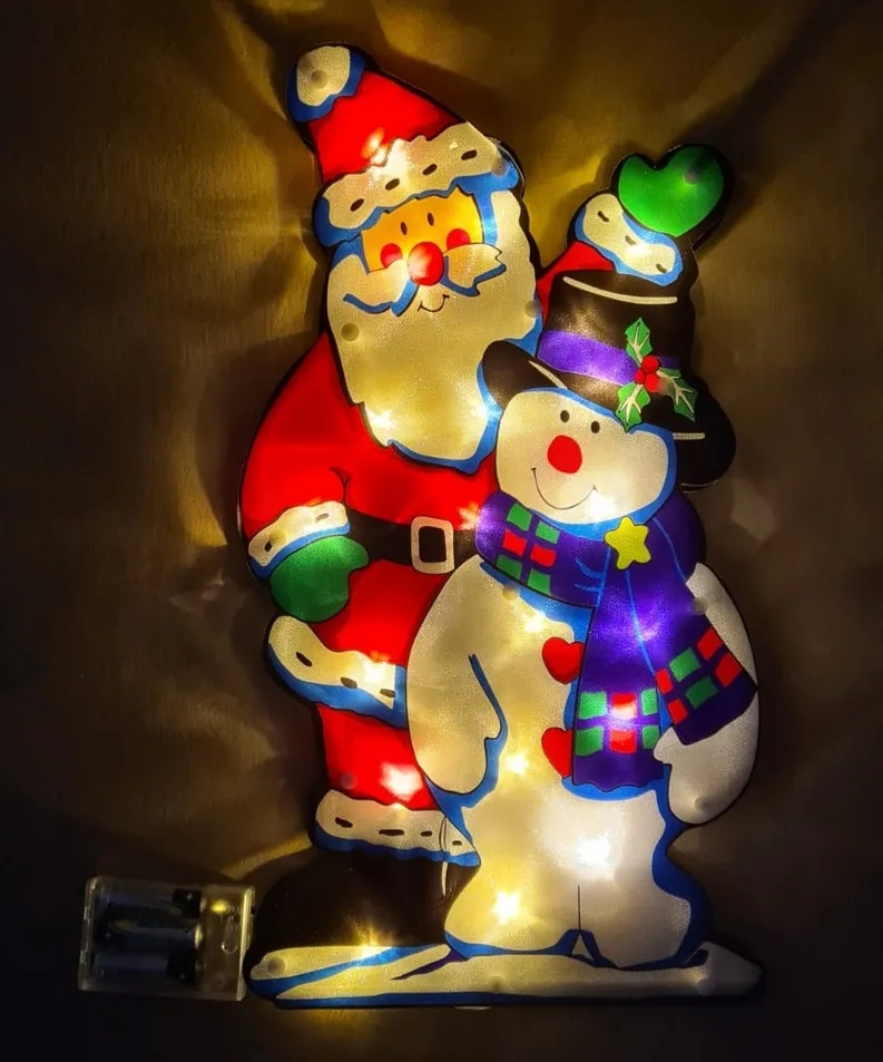 Світлодіодна прикраса з фольги Дід Мороз, теплі білі вогники, на батарейках 45 см