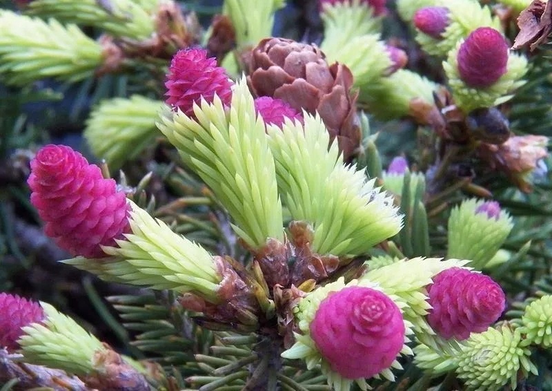 Ялина звичайна PUSCH унікальний КРАСИВІ РОЖЕВІ ШИШКИ карликовий саджанець