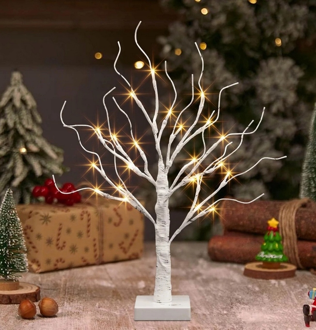 ЯЛИНКА, ЩО СВІТИТЬСЯ, СВІТЛОДІОДНА 60 СМ, ОРНАМЕНТ, ЯЛИЧНІ ПРИКРАСИ БЕРЕЗА БІЛА ТЕПЛА