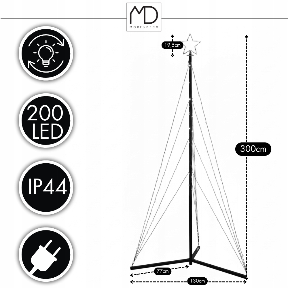 Ця унікальна ялинка, яка повністю складається з 200 світлодіодних лампочок, порадує не лише домочадців, а й кожного перехожого! З настанням темряви він стає справжньою окрасою навколишнього середовища, створюючи неповторну атмосферу. Це не звичайна ялинка, а різдвяна зірка вашого саду!