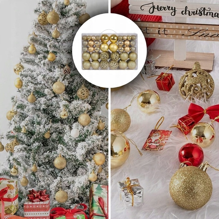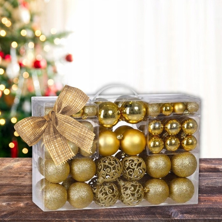 дрібнички ялинки встановлені xxl золото 100 шт. Різдвяні тенденції, надаючи інтер'єру елегантного персонажа. Набір дрібничок ретельно упакований, що робить його ідеальною ідеєю подарунка.