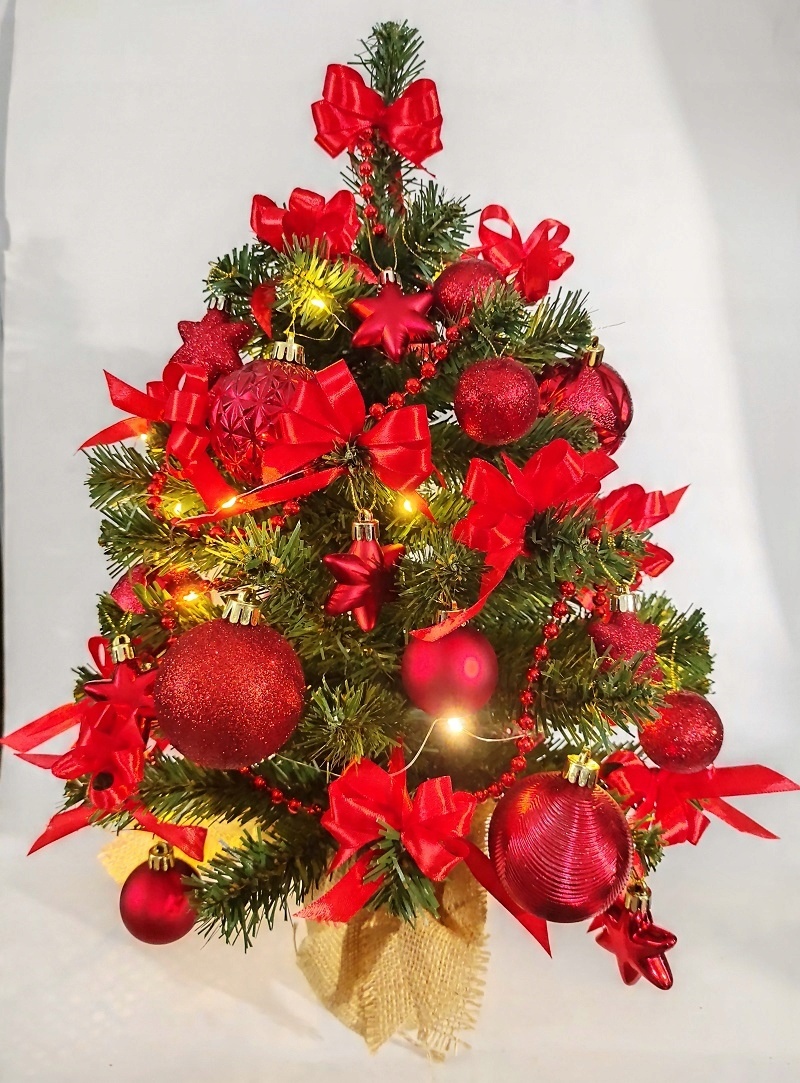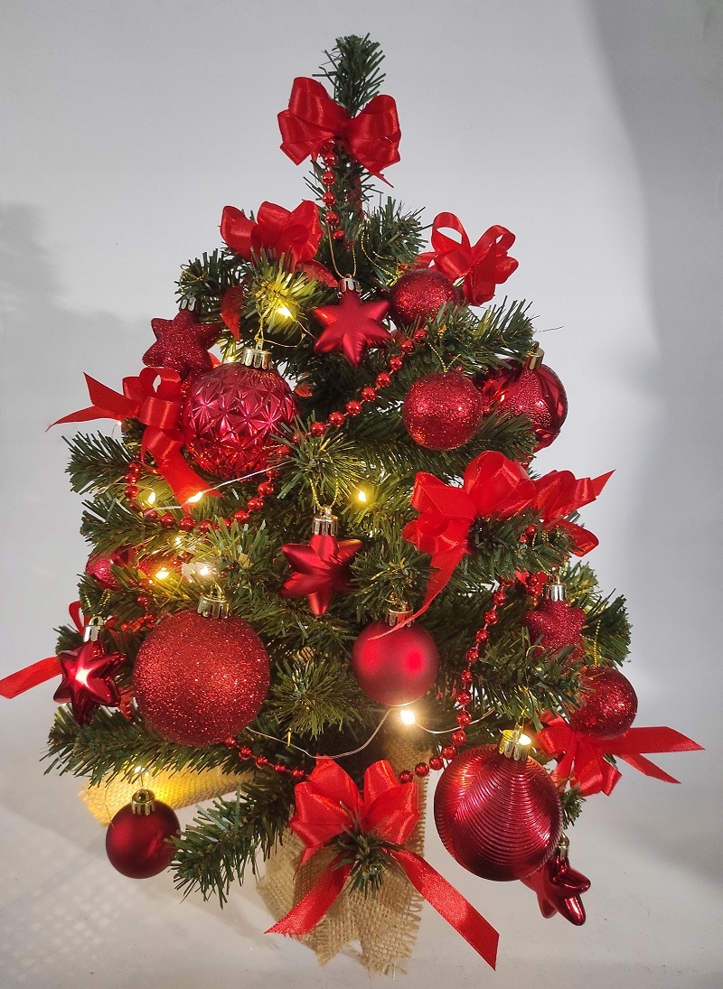 Ялинка маленька 50см з декораціями, ДЕКОРАЦІЇ, червона, готова, вбрана, LED, ХІТ