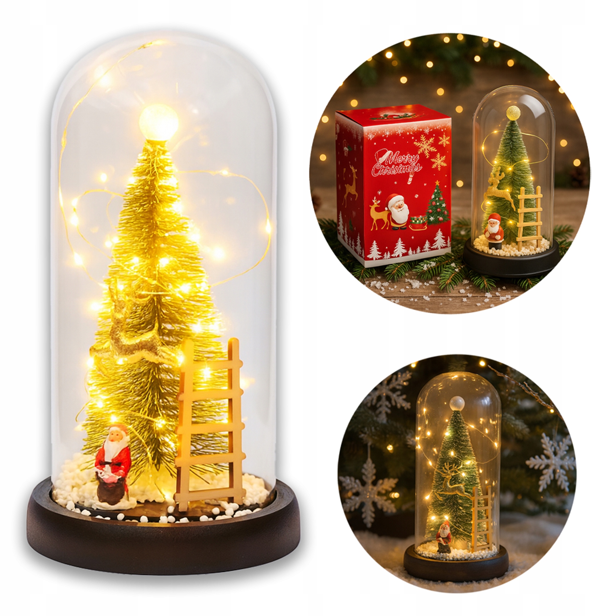 ✨ Принесіть магію Різдва у свій дім завдяки елегантній світлодіодній ялинці, укладеній у скляний купол. Це унікальна прикраса, яка радує своїм теплим сяйвом і створює затишну атмосферу. Також ідеально підходить як готовий подарунок у коробці ПРЕМІУМ - прямо з-під ялинки.
