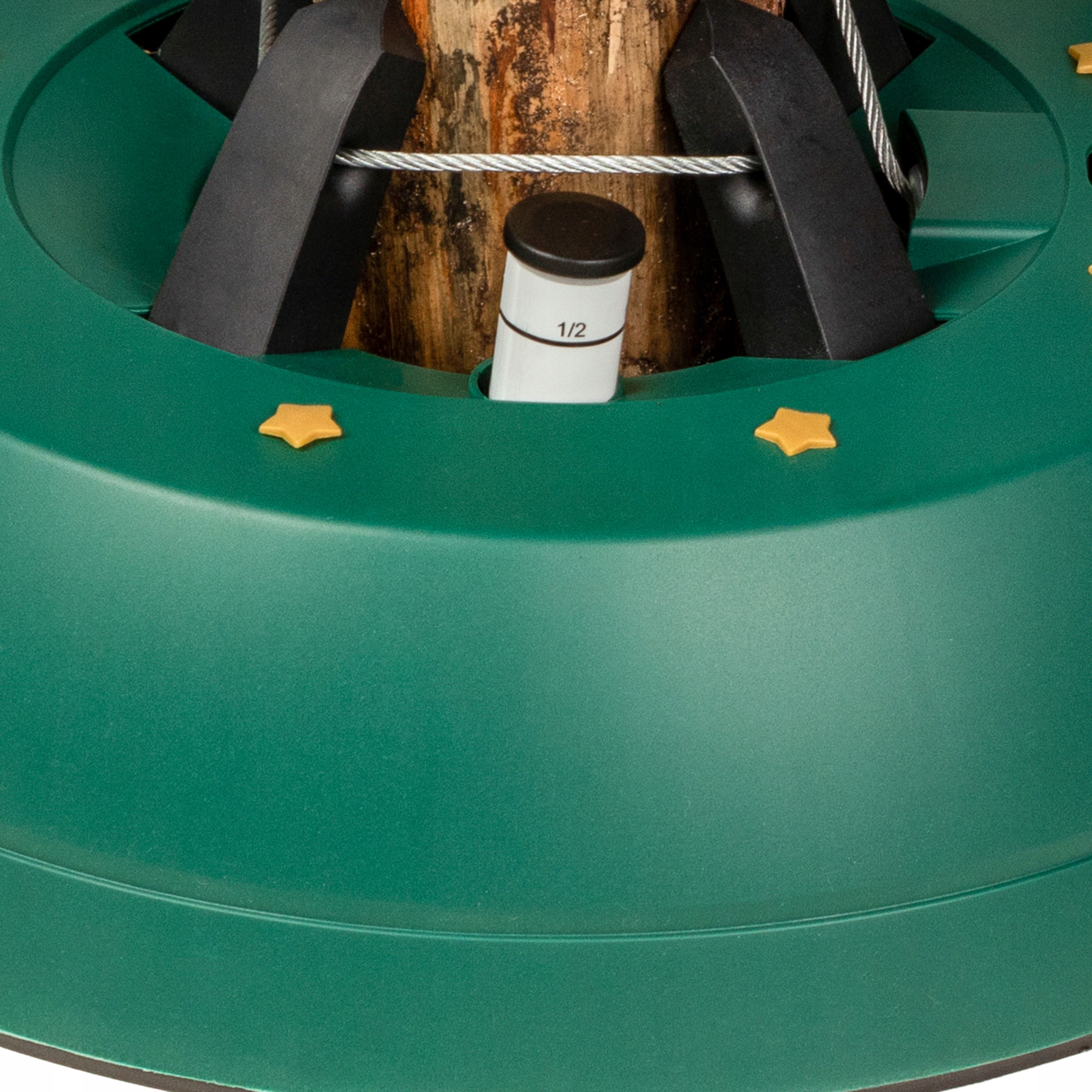 - Покладіть ялинку в підставку, висаджуючи її на сталеву шампуру, що виступає з основи; Важіль до стенд сильно затягнеться на багажнику; Сенсінки ялинки? Показник, що розширюється, інформує про правильну начинку. Частина індикатора, яка позначена червоним кольором, з’явиться.